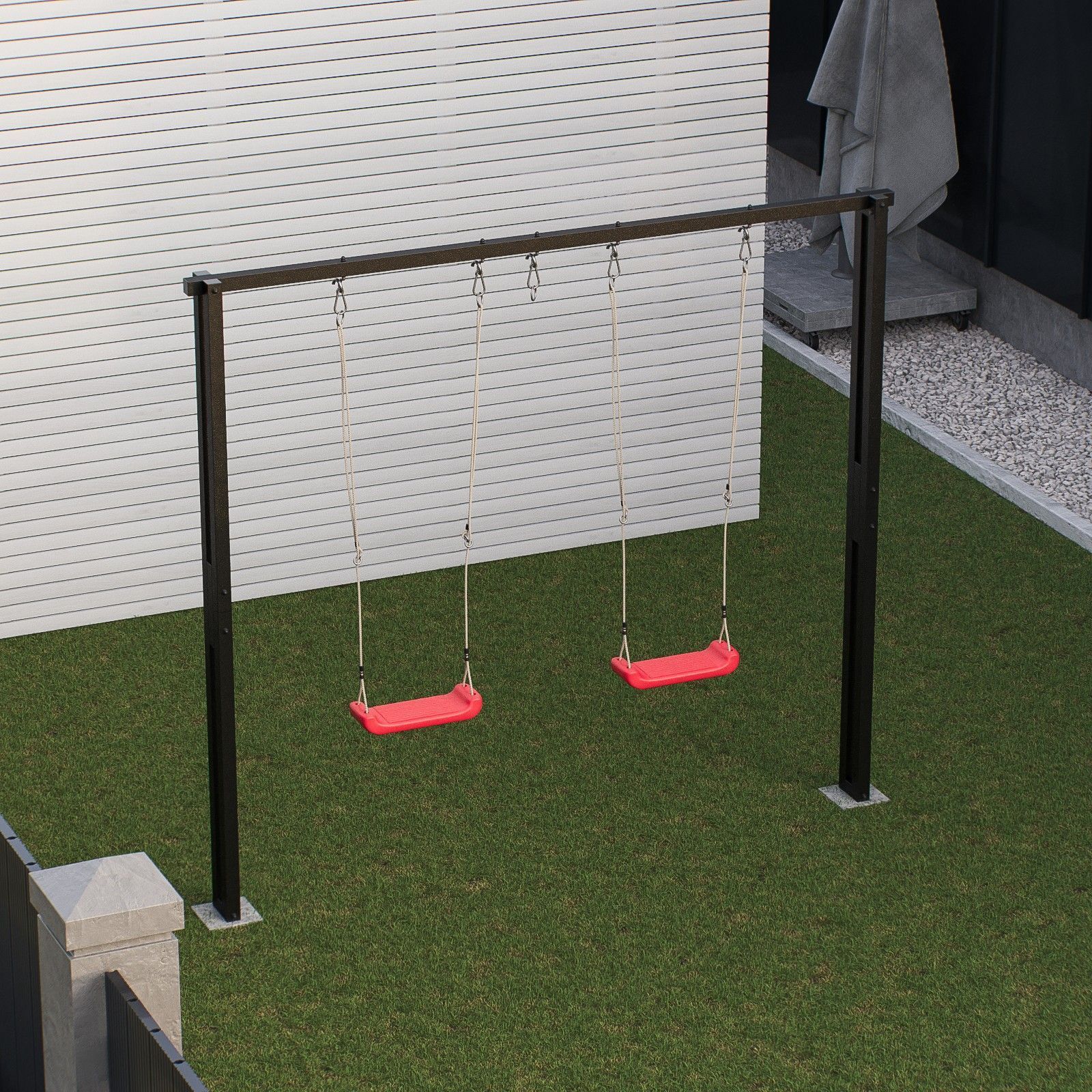 QLS Stahl Schaukelgestell Metall Doppelschaukel für zwei Kinder Hängemattegestell 8354
