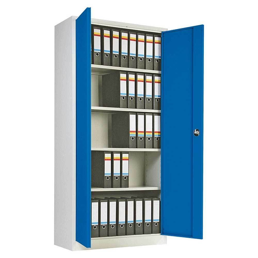 Stahlblechschrank, HxBxT 1800 x 800 x 380 mm, Korpus lichtgrau, Türen enzianblau