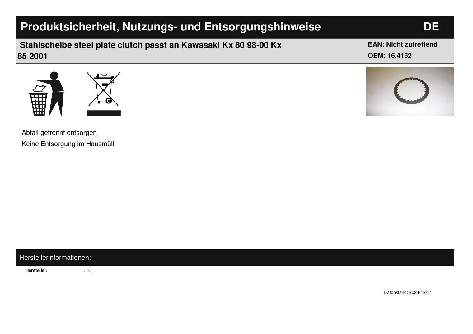 Stahlscheibe steel plate clutch passt an Kawasaki Kx 80 98-00 Kx 85 2001