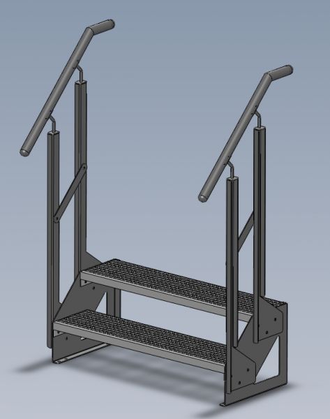 Stahltreppe Gartentreppe freistehend 2 Stufen mit Geländer B 600-?1400mm