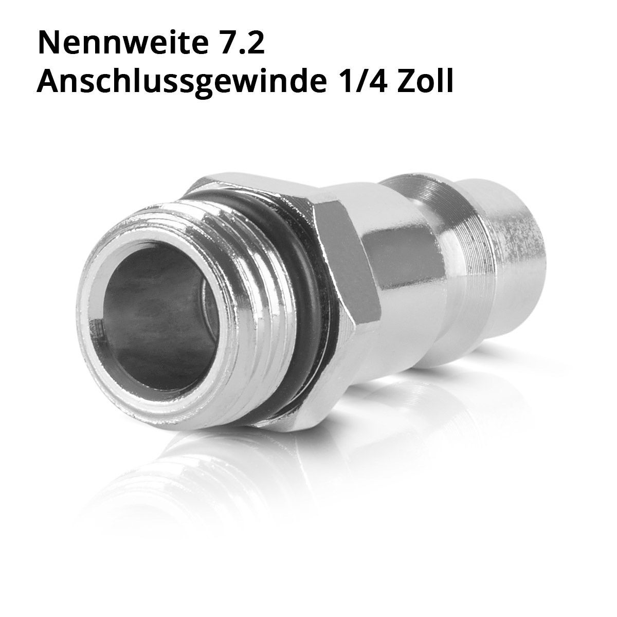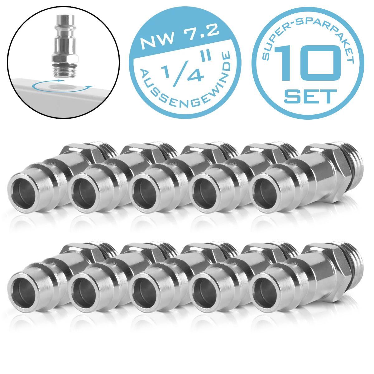 Stahlwerk 10er Set Druckluft-Schnellkupplung Stecknippel NW 7.2 1/4 Zoll