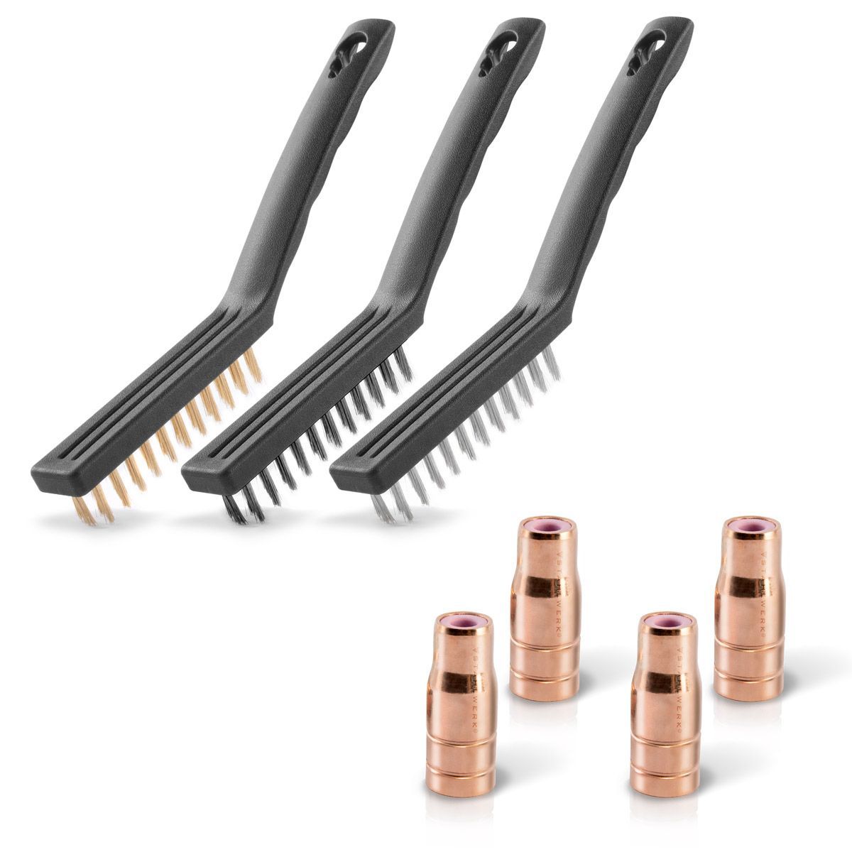 Stahlwerk 4er Set Fülldrahtdüsen AK14/MB14/AK15/MB15 drei Drahtbürsten Set