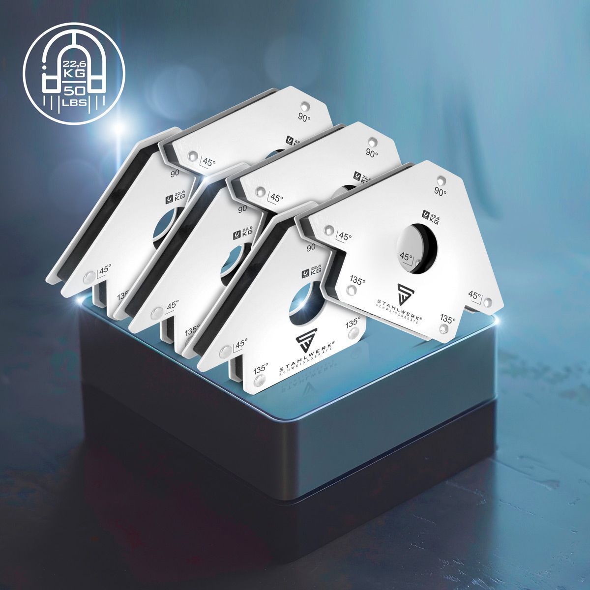 Stahlwerk 6 x Magnet-Schweißwinkel 45° x 90° x 135°, 22,6 kg / 50 lbs 6er Set