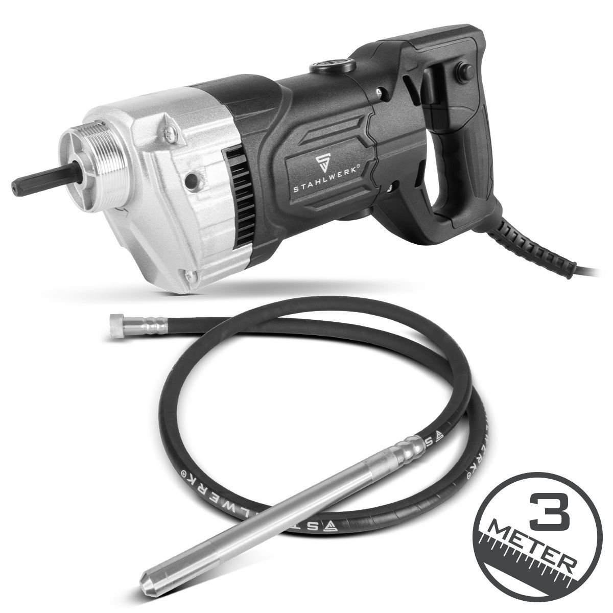 Stahlwerk Betonverdichter 900W mit Rüttelflasche 35mm 3m Gesamtlänge Innenrüttler für