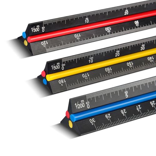 Stahlwerk Dreikant-Lineal 3er Set 30 cm mit metrischen Skalen Architekten-Lineal