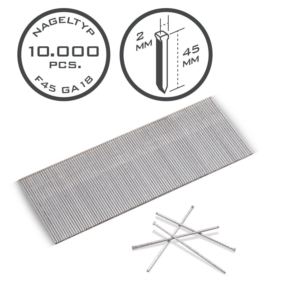 Stahlwerk Druckluft Nägel 45 mm Gauge 18 (1,25 x 1,05 mm) 2 mm Kopf 10.000er Set