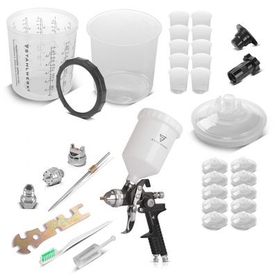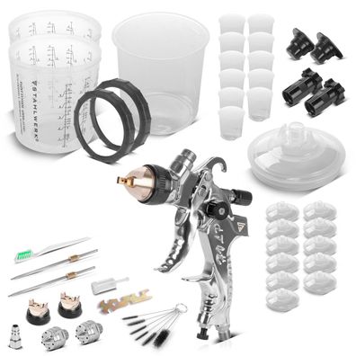 Stahlwerk Druckluft-Lackierpistole HVLP mit 3 Düsen und 25 Mischbechern 650 ml