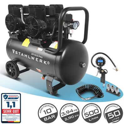• Stahlwerk Kompressor 10 bar Druckluft Set Spiralschlauch Reifenfüller Verteiler