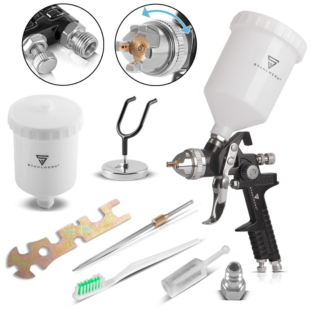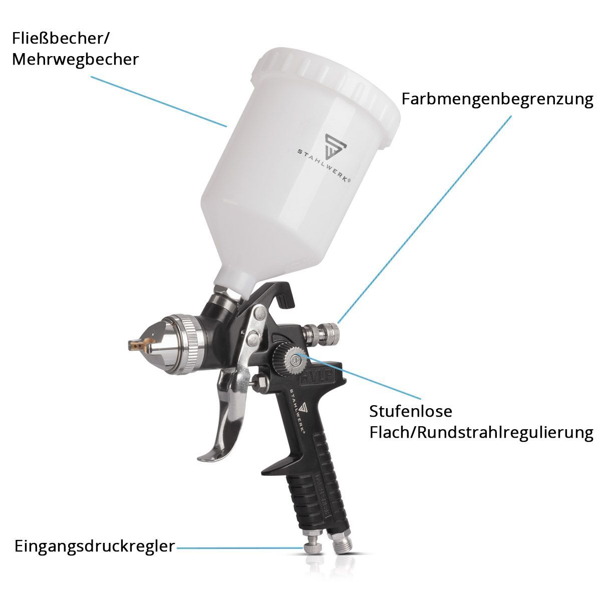 Stahlwerk HVLP Lackierpistole SG-600 ST mit 1,4 mm Düse und 600 ml Fließbecher