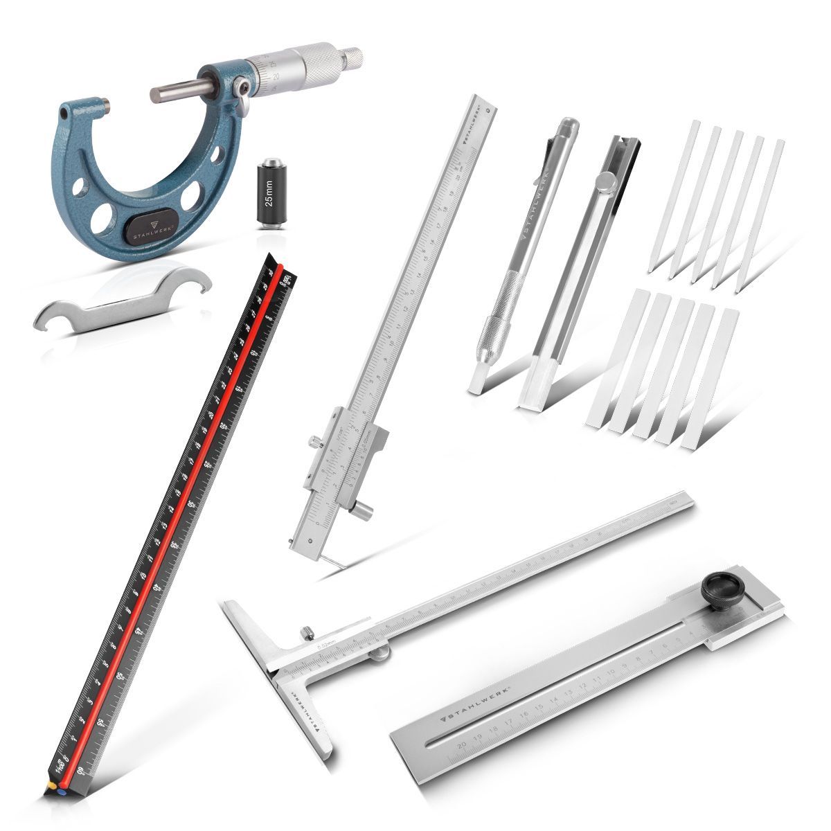 Stahlwerk Messwerkzeugset Messschieber Mikrometer Lineal Tiefenmesser Kreide