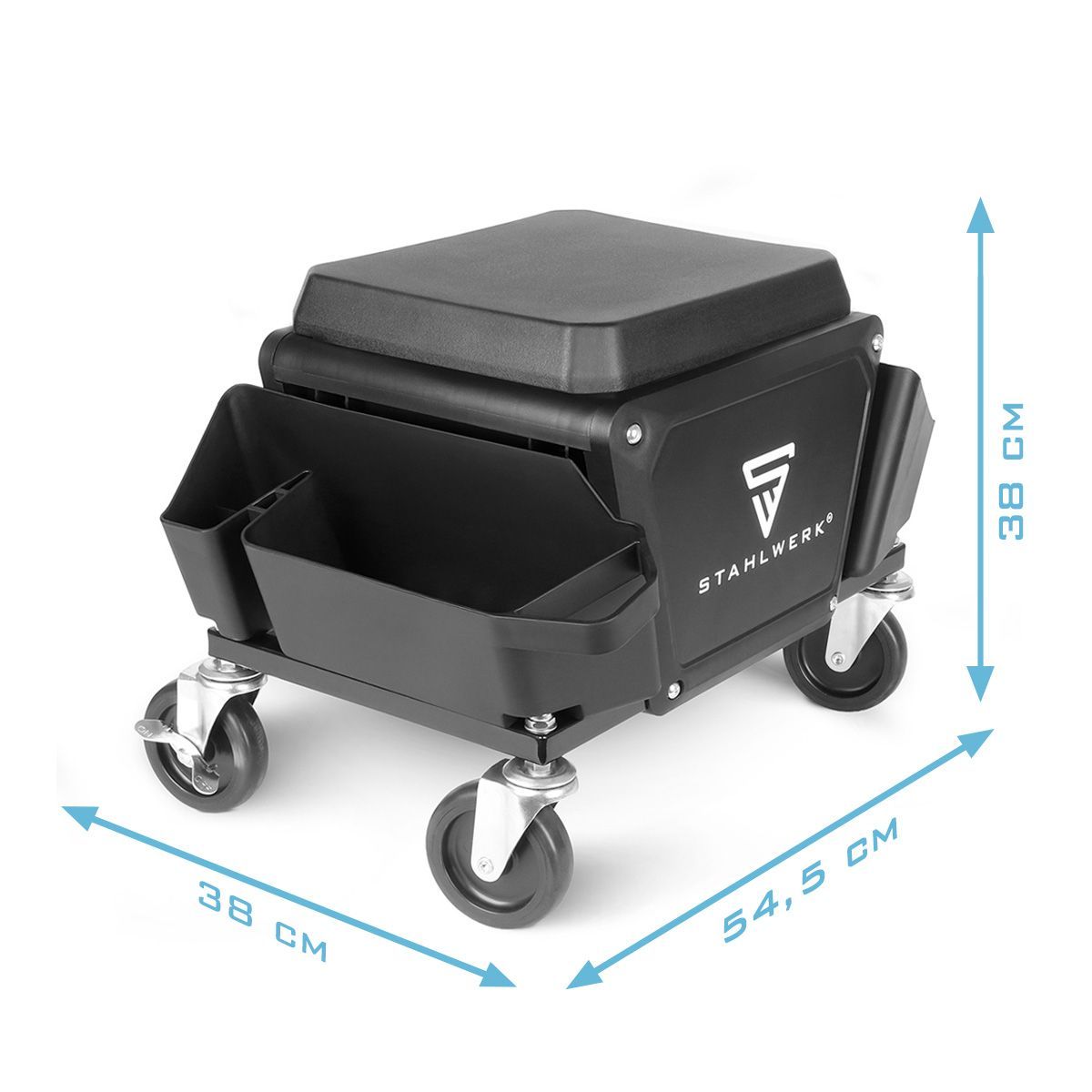 Stahlwerk Mobiler Werkstatthocker 135 kg Rollhocker und Werkstattsitz mit Innenfach