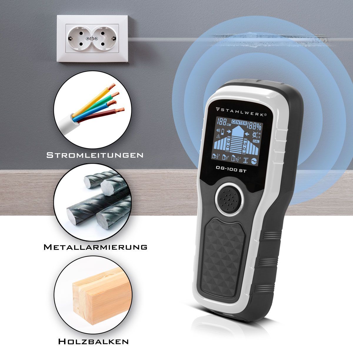 Stahlwerk Ortungsgerät OG-100 ST Wandscanner, Metalldetektor, Leitungssucher