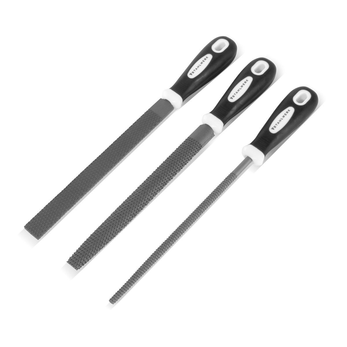 Stahlwerk Raspelfeilen 3er Set 200 mm Rundfeile, Halbrundfeile und Flachfeile