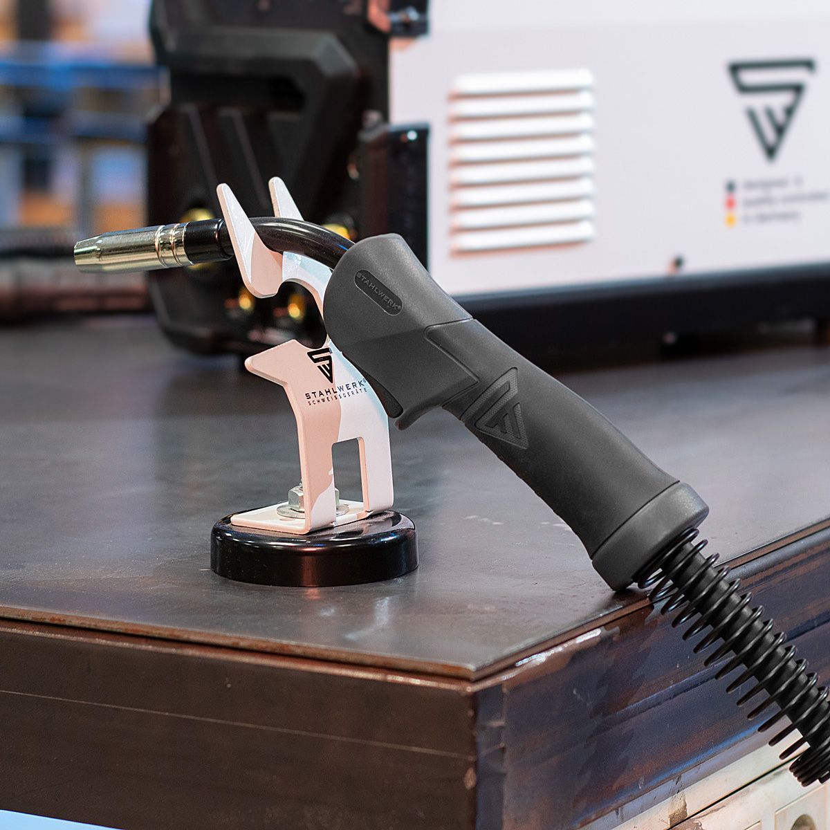 Stahlwerk Schweißbrenner-Halterung mit magnetischem Standfuß weiß Wig Mig Plasma