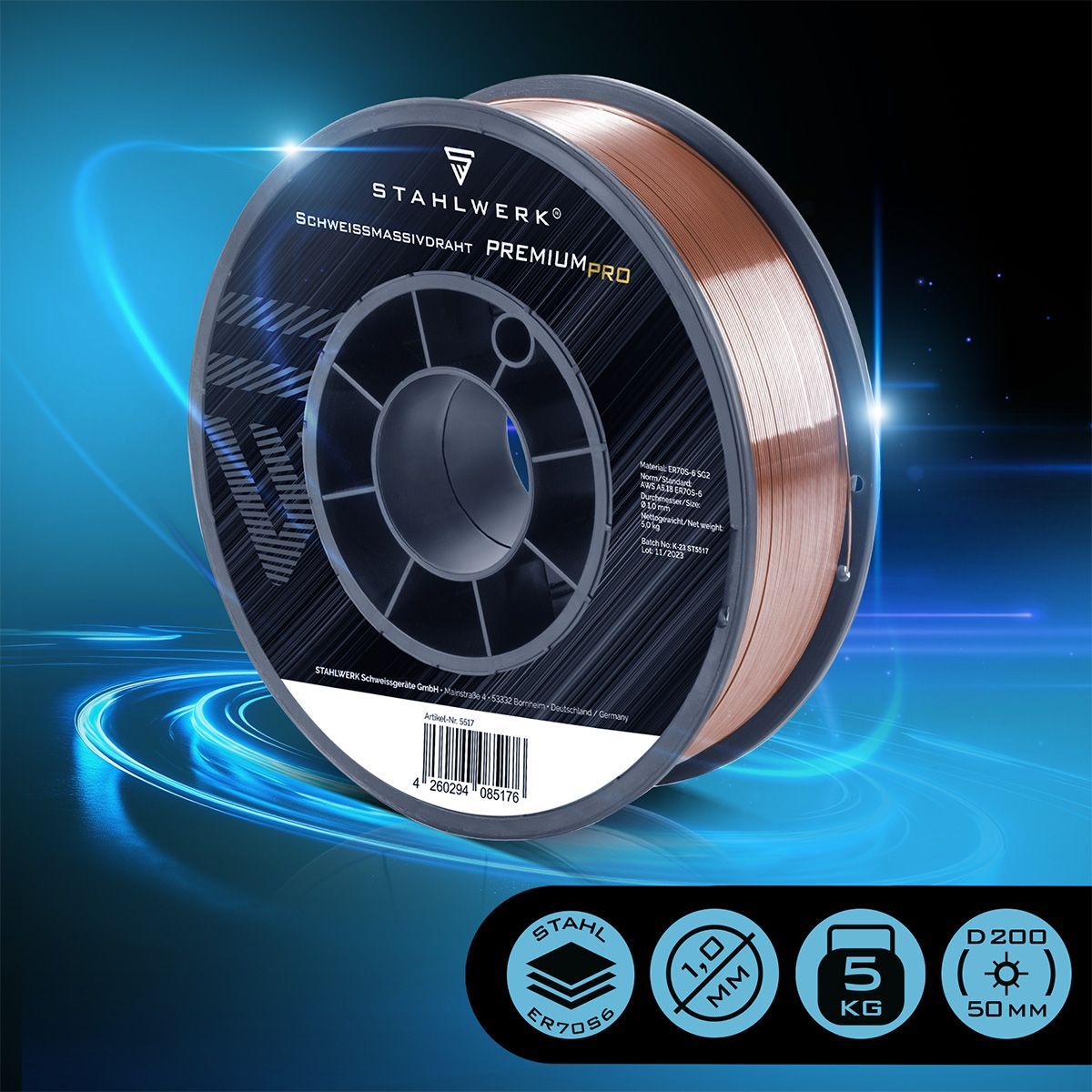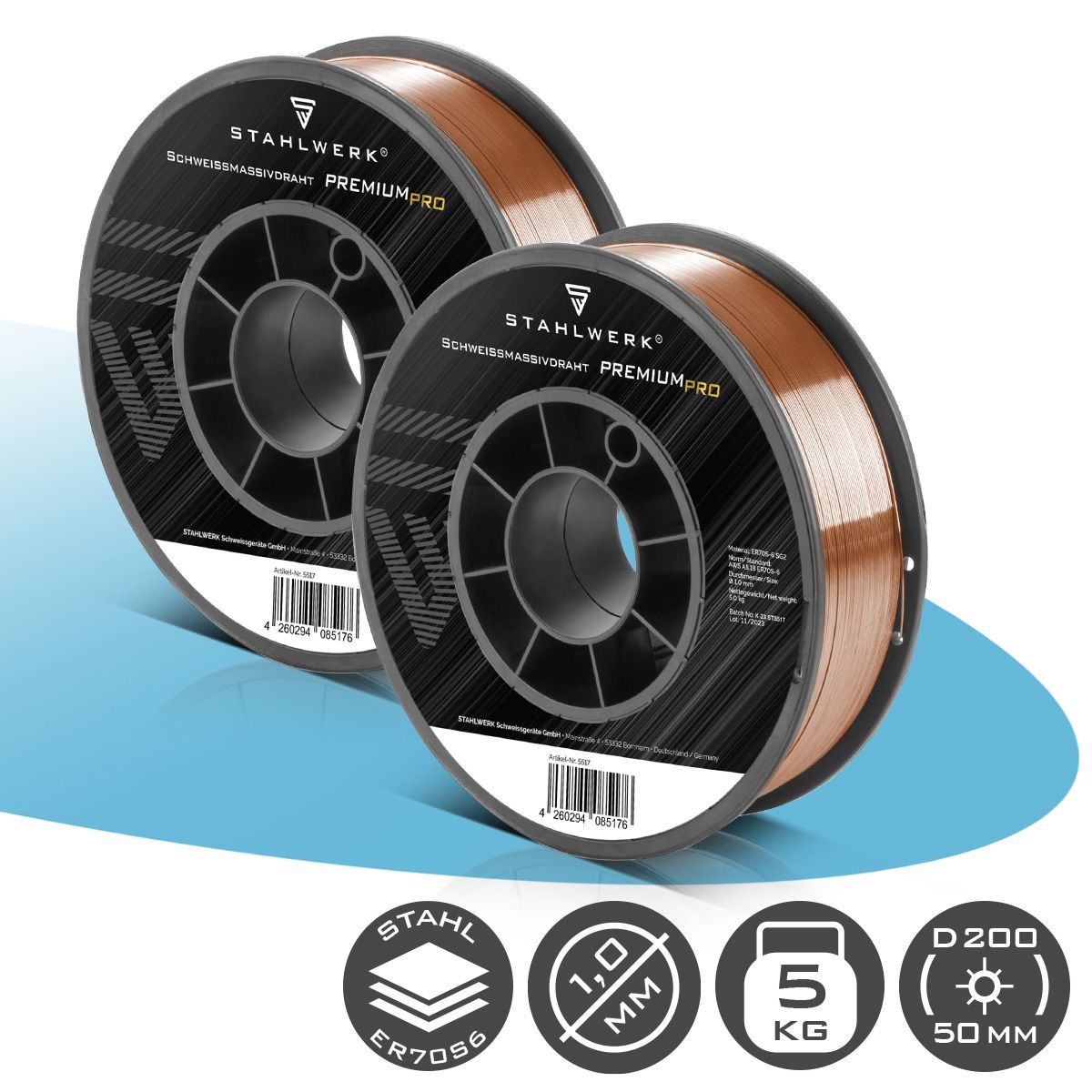 Stahlwerk Schweißdraht 2 x MIG/MAG Ø 1,0 mm Drahtrolle 5 kg Stahl SG2 ER70S-6