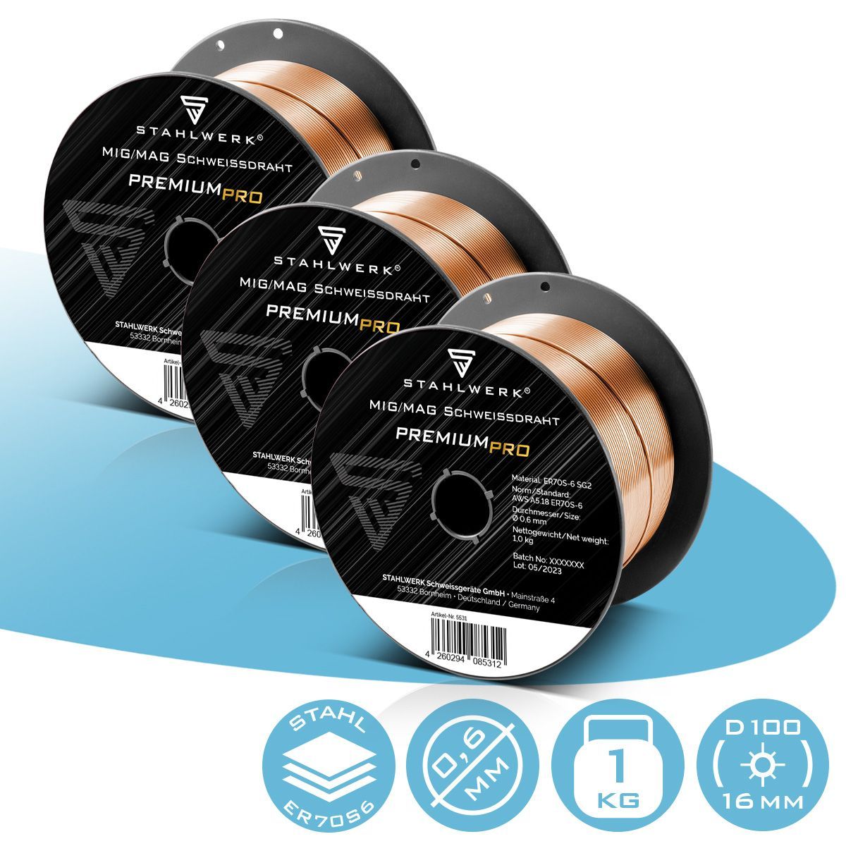 Stahlwerk Schweißdraht MIG MAG ER70S-6 SG2 Ø 0,6 mm S100/D100 3er-Set