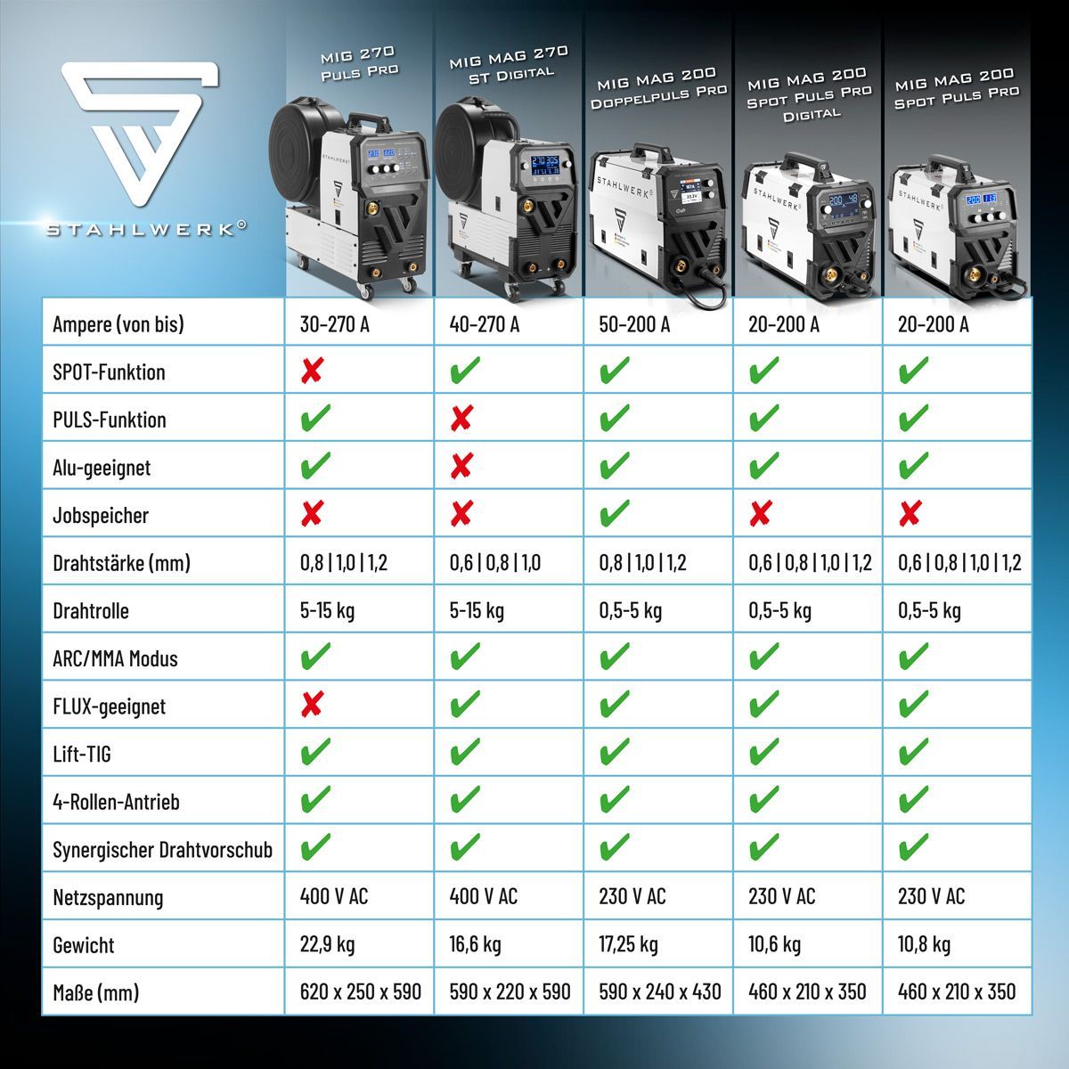 Stahlwerk Schweißgerät MIG 270 Puls Pro 4-in-1 Schutzgas-Schweißgerät Alu-Paket