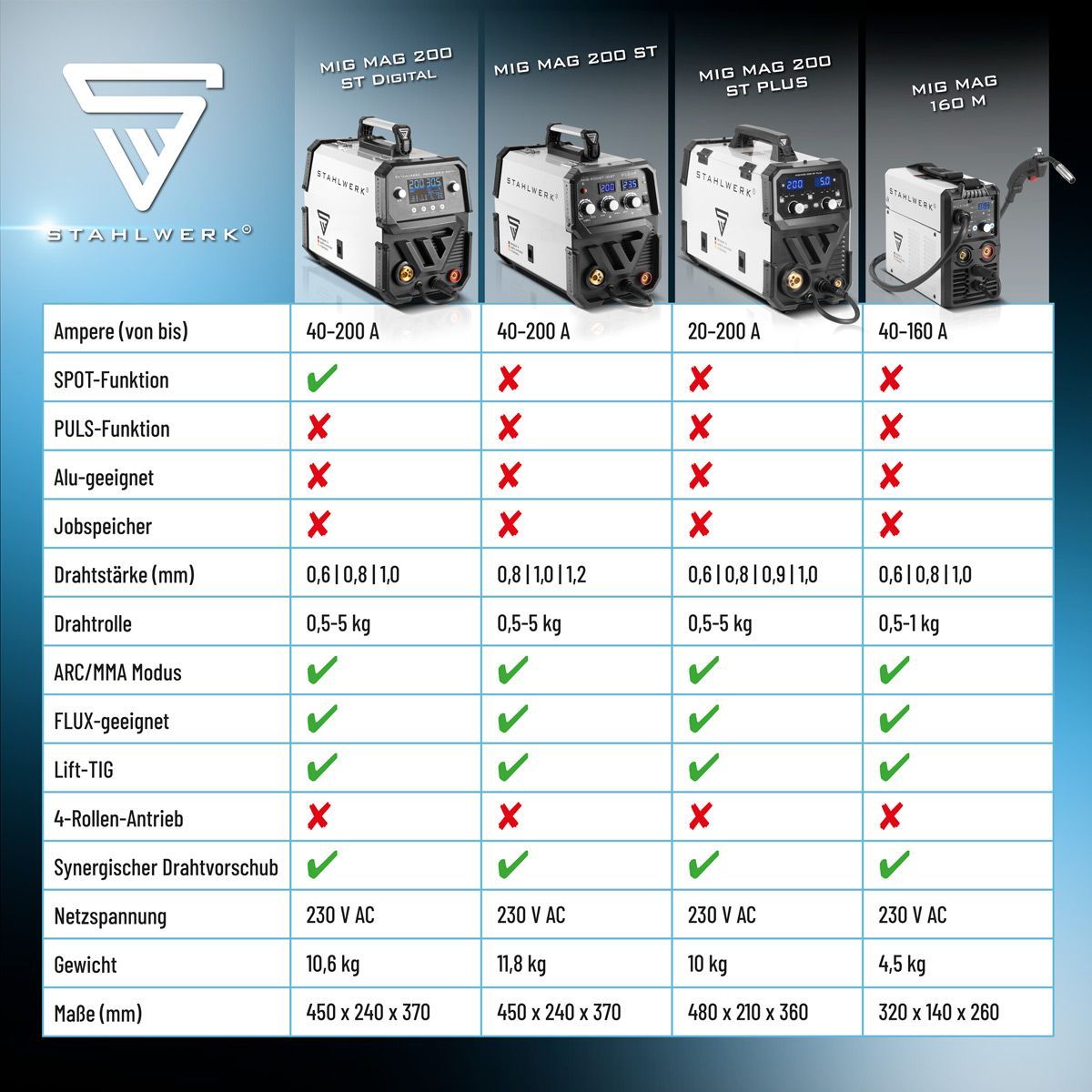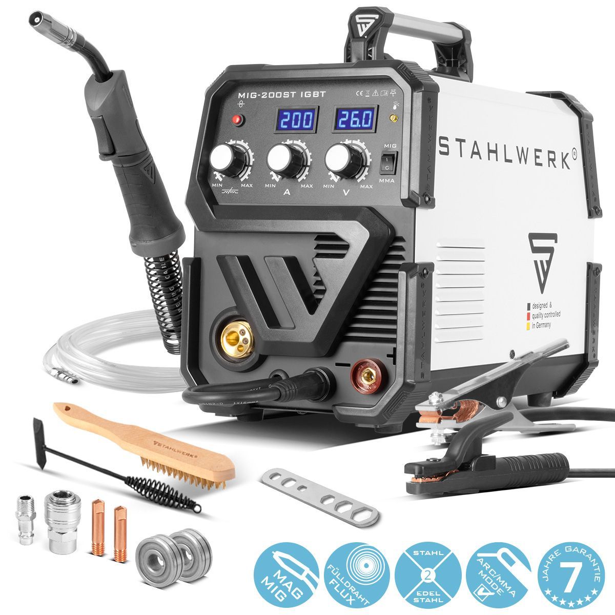 Stahlwerk Schweißgerät MIG MAG 200 ST IGBT Schutzgas mit 200 Ampere MMA E-Hand