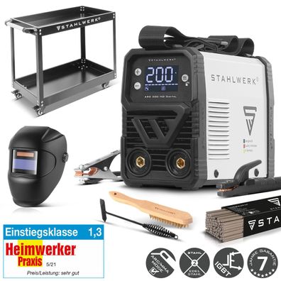 Stahlwerk Schweißgerät ARC 200 MD Digital 200A Vollausstattung MMA Gerätewagen Helm