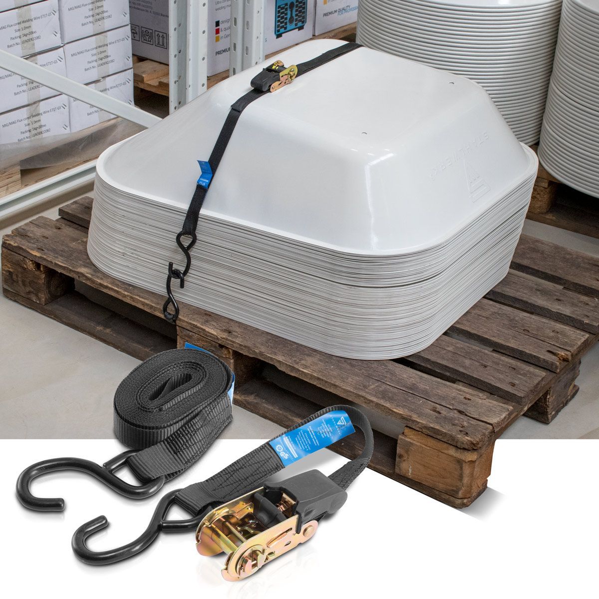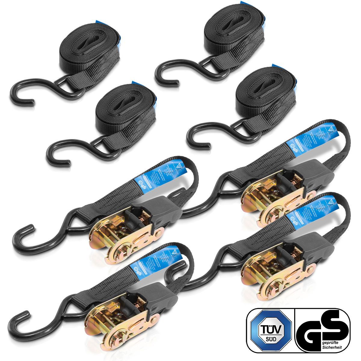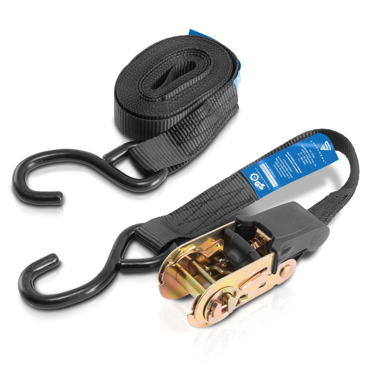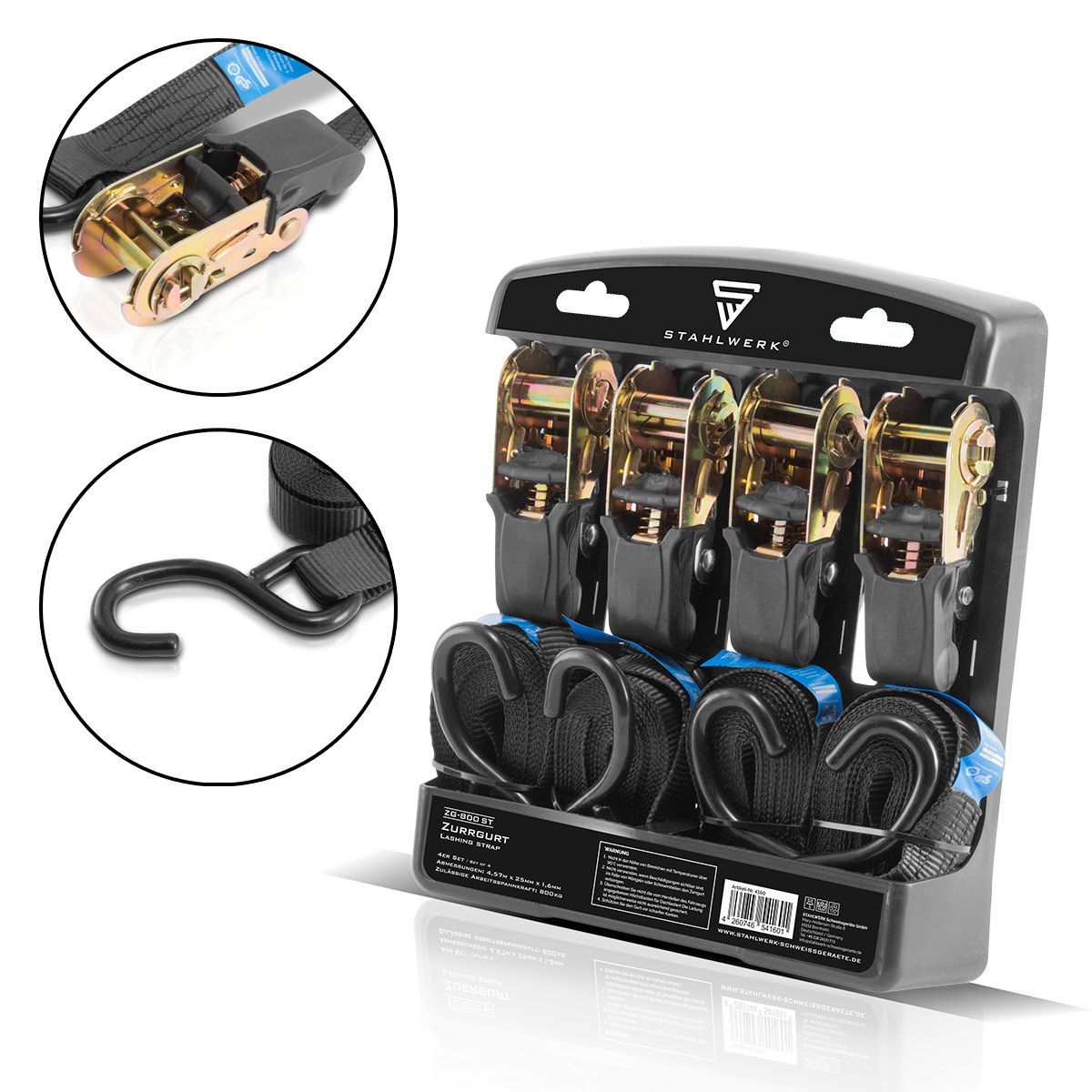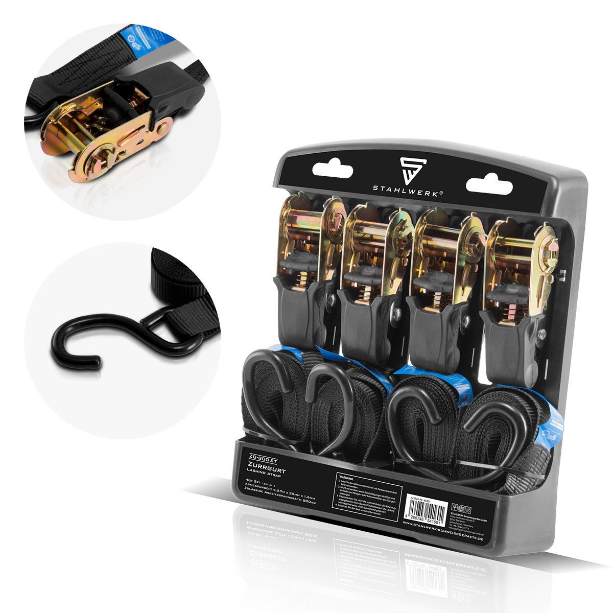 Stahlwerk Spanngurte ZG-800 ST mit Ratsche + Haken 400 kg Zuglast 4er Set