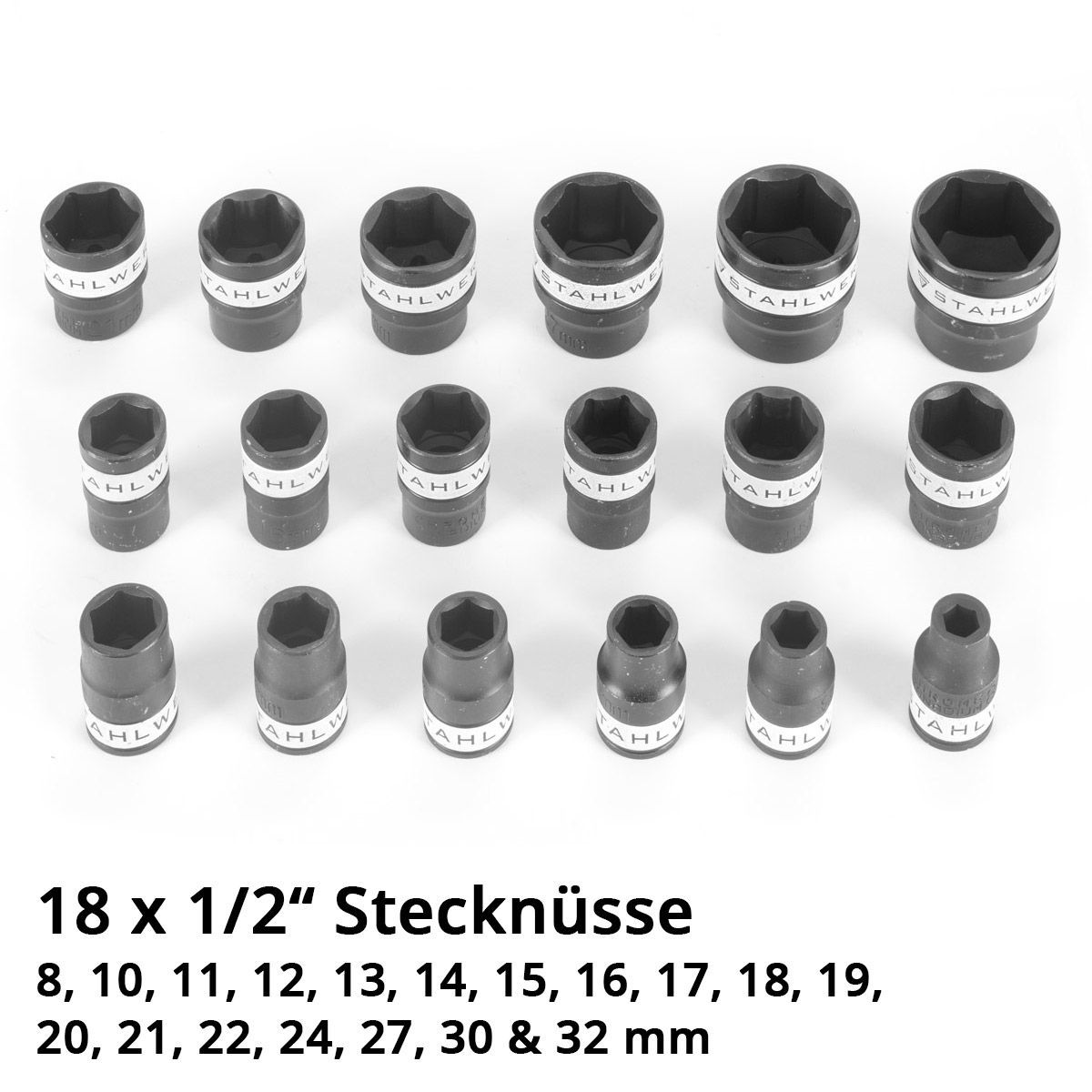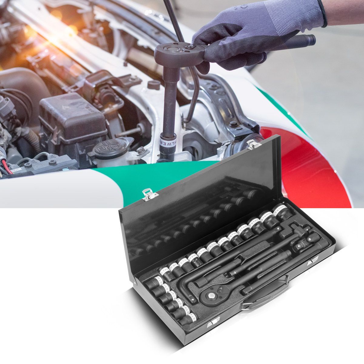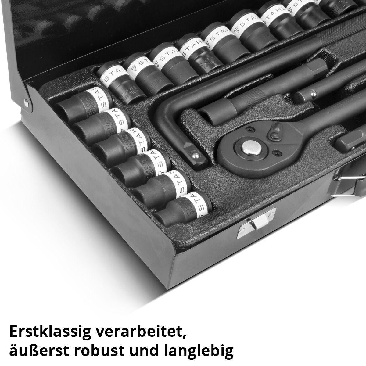 Stahlwerk Steckschlüssel-Satz 24-teiliger Knarrenkasten mit 1/2" Umschaltknarre