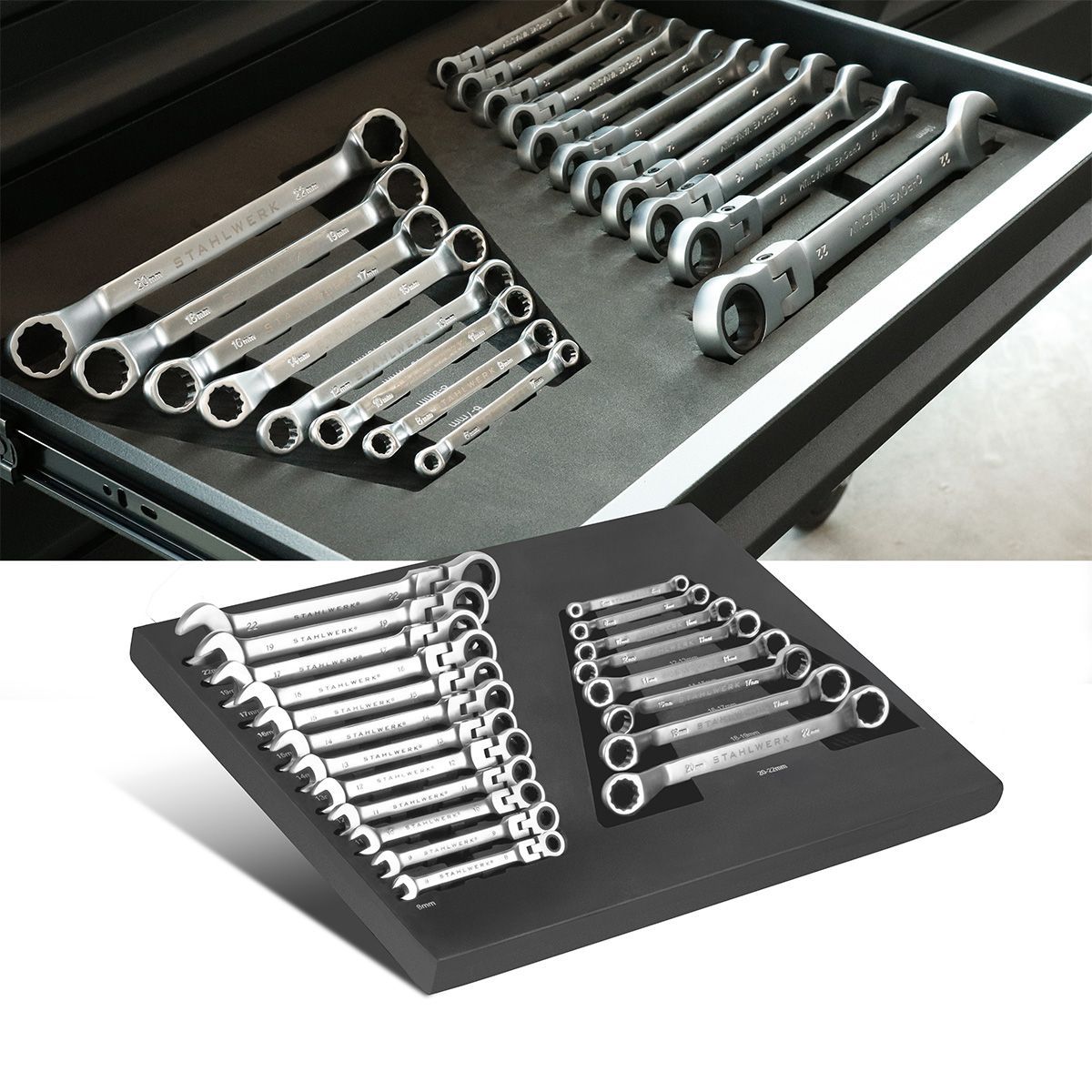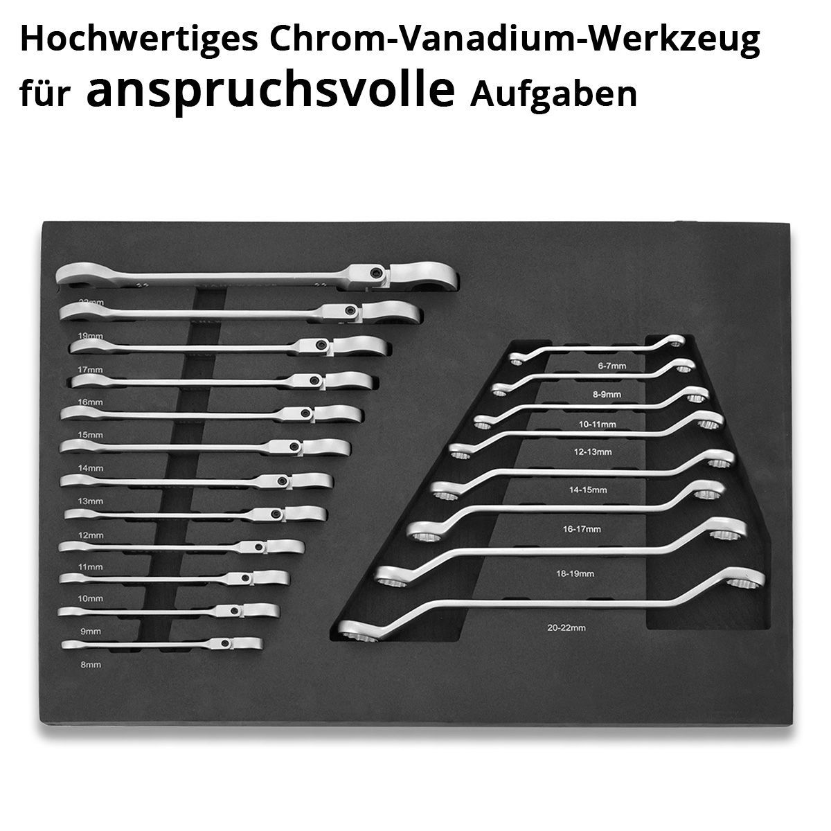 Stahlwerk Werkzeugeinlage 20-teiliger Schraubenschlüssel-Satz Weichschaumeinlage