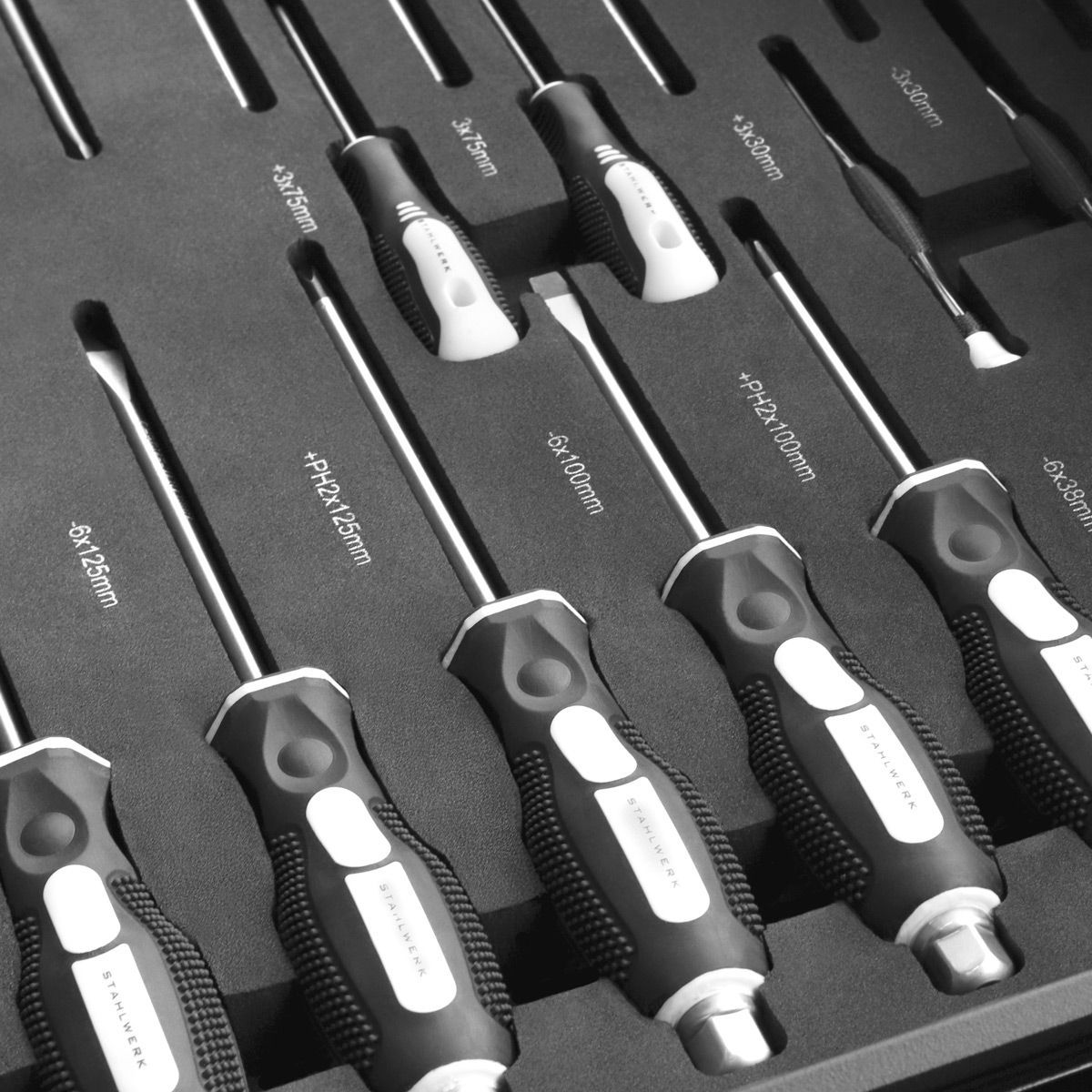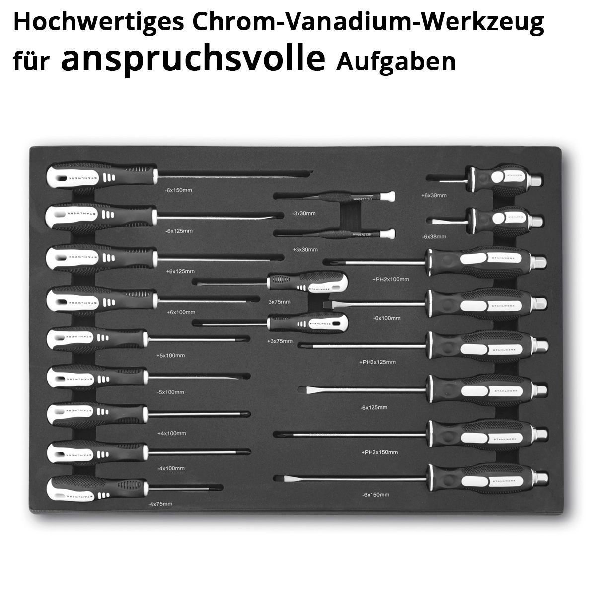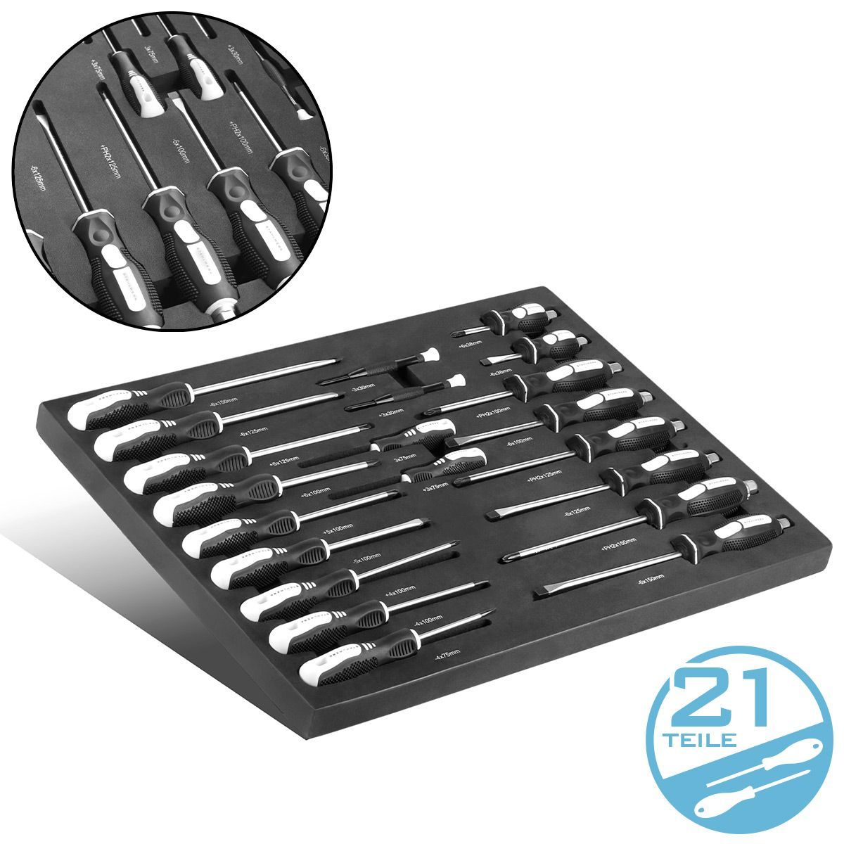 Stahlwerk Werkzeugwageneinlage 21-tlg Schraubendreher-Set mit Schaumstoffeinlage