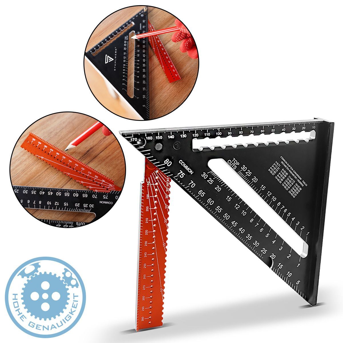 Stahlwerk Winkeldreieck mit Anschlag Aluminium-Winkelmesser Zimmermannswinkel