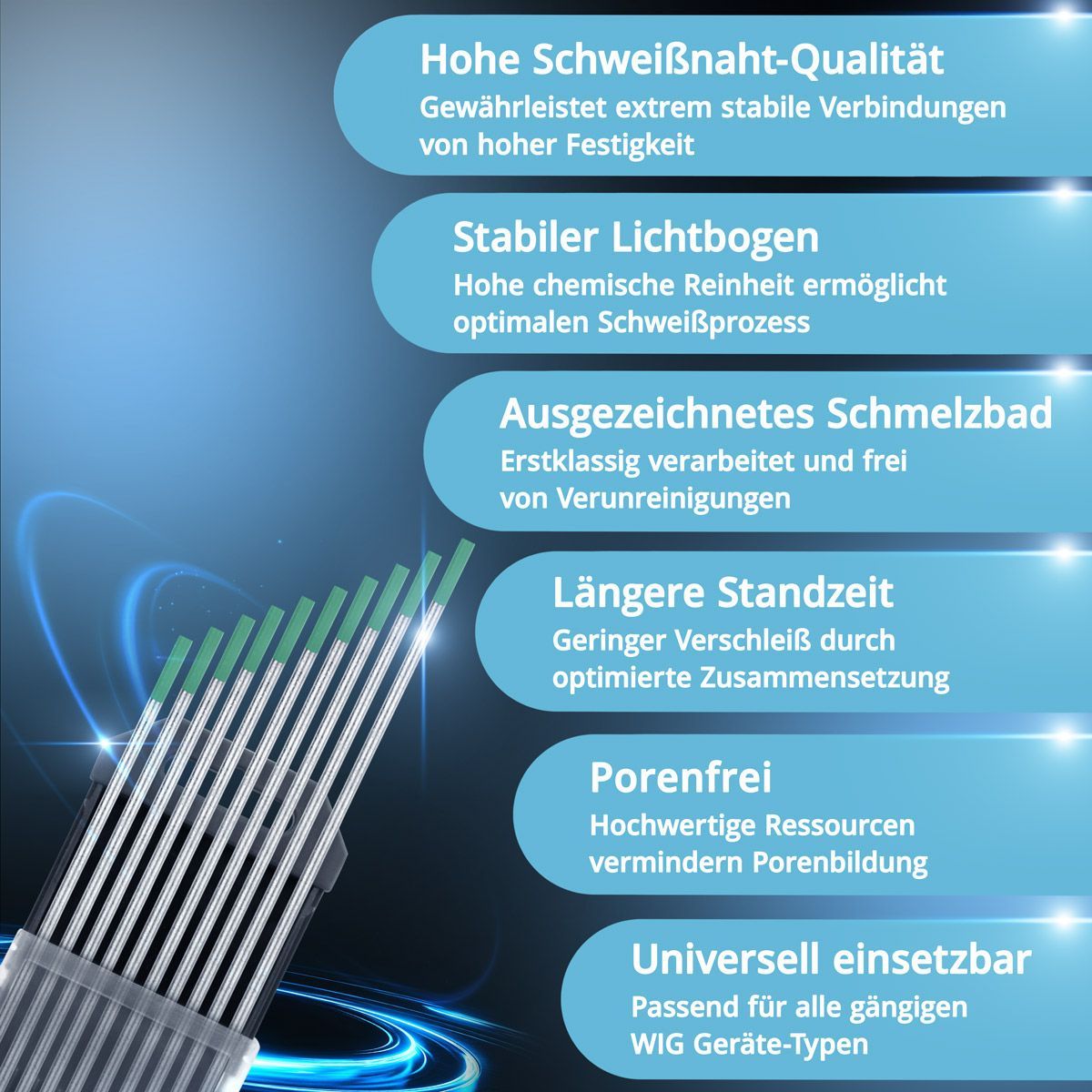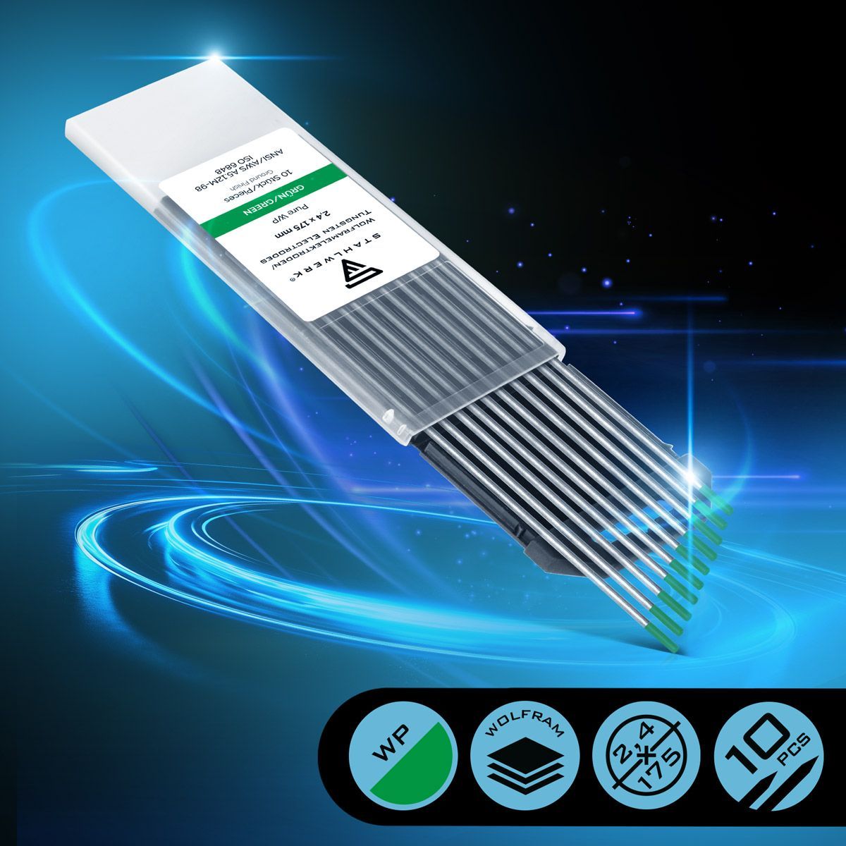 Stahlwerk Wolframelektroden / Schweißelektroden WP Grün 2,4 mm x 175 mm 10er Set