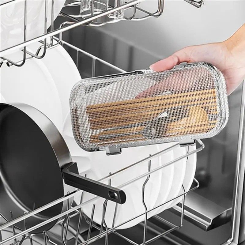 Stainless Steel Mesh Cutlery Cleaning Basket for Dishwasher, Small Items & Spoons St