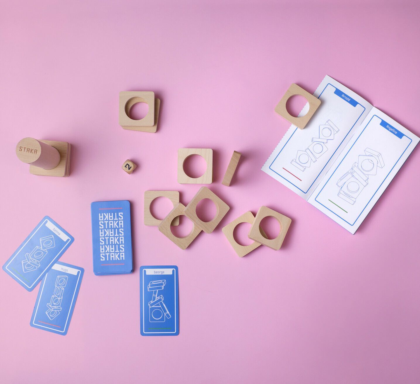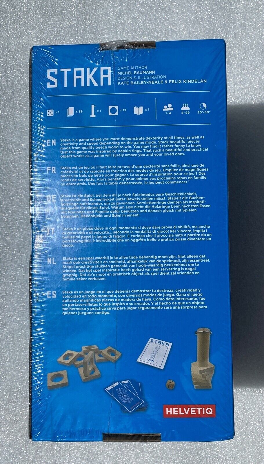 Spieleranzahl: 1 bis 4 Spieldauer: 30 Minuten Altersempfehlung: 8+ STAKA Teste deine Geschicklichkeit! Die Idee für dieses Stapelspiel kam dem Schweizer Spielerfinder Michel Baumann bei einem Abend unter Freunden, der damit endete, dass die gesellige Runde munter Serviettenringe aufeinanderstapelte.