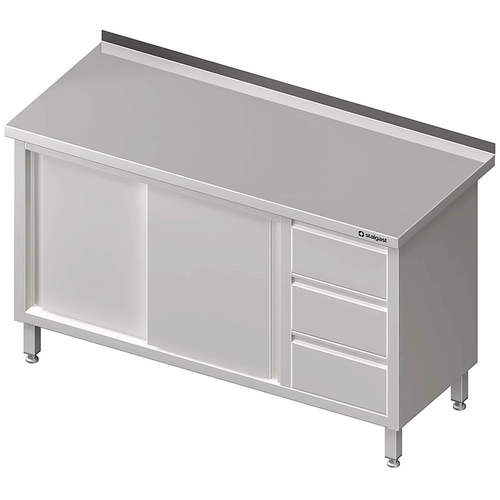 Stalgast Arbeitsschrank mit Schiebetüren, 1600x600x850 mm, mit 3er Schubladenblock