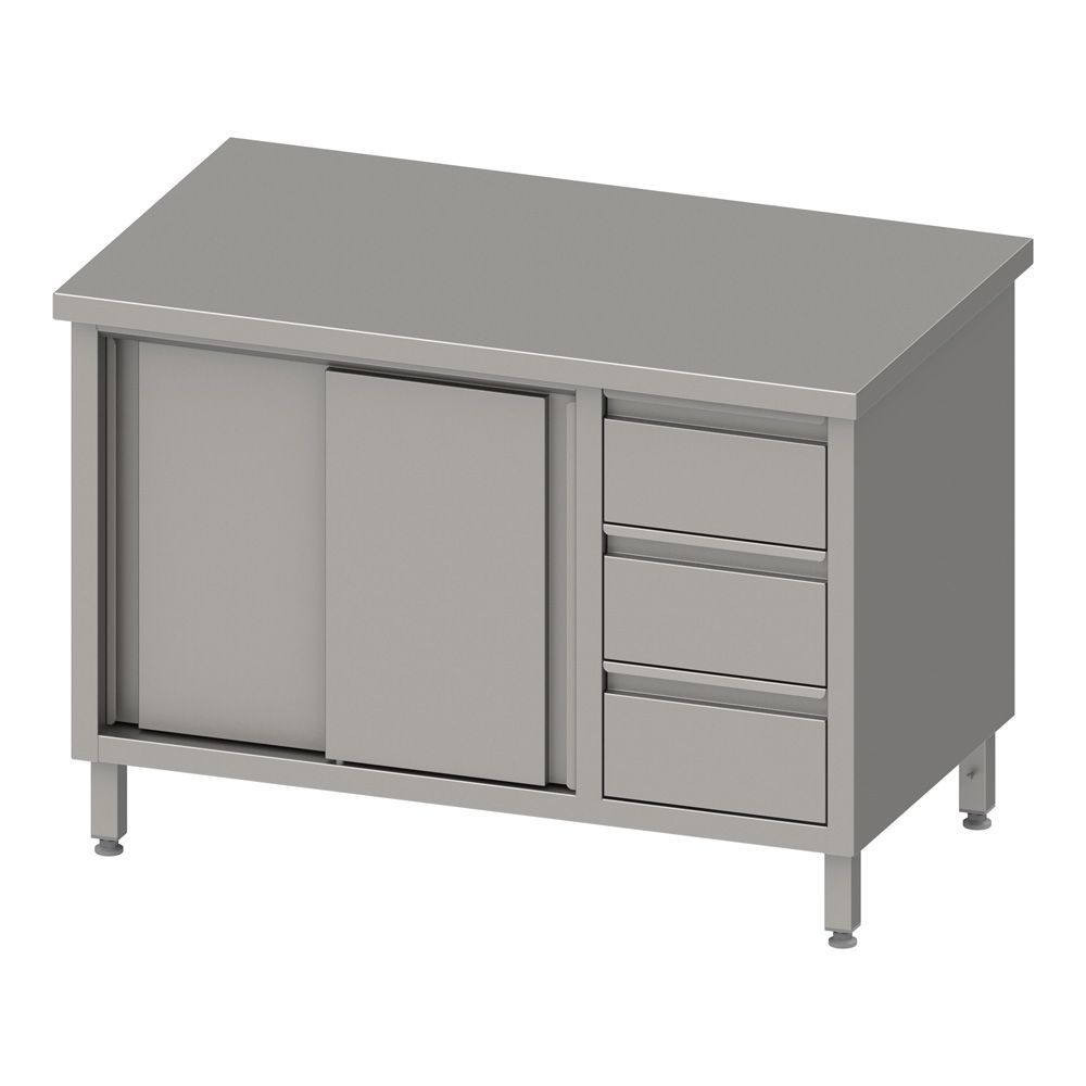 Stalgast Arbeitsschrank mit Schiebetüren 2000x700x850 mm, mit 3er Schubladenblock