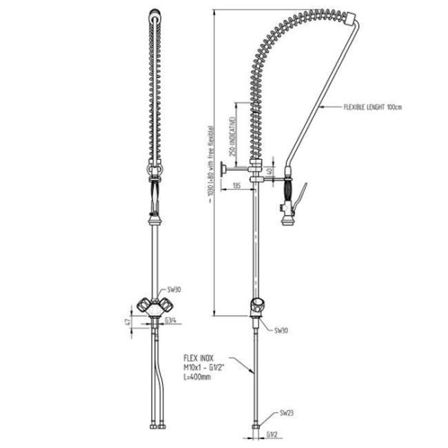 Monolith Stalgast Geschirrbrause Mit Mischbatterie, Einloch-Montage, Zwei Mischventile