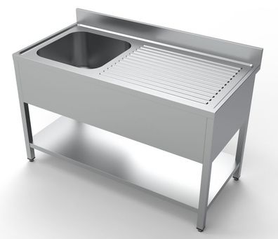• Spültisch Spülbecken links mit Grundboden 1200 x 600 x 850 Edelstahl NEU Gastlando
