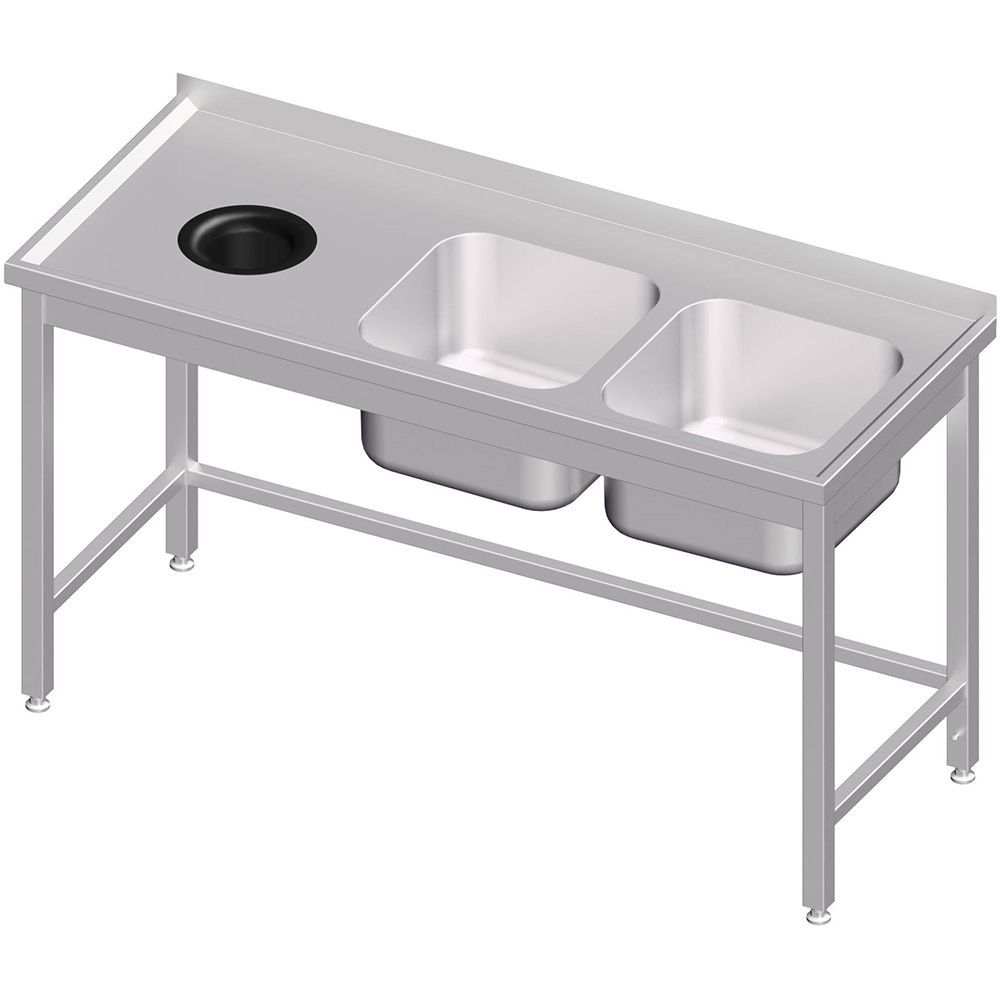 Stalgast Spültisch ohne Grundboden, mit Abfallloch, 1500x600x850 mm, mit zwei
