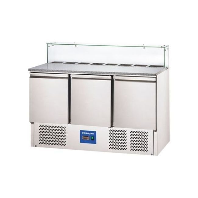 Stalgast Starline Pizzatisch Mit Glasaufsatz Und Drei Türen, Gn11, 1365X700X1075