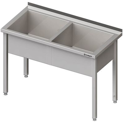 • Stalgast Topfspüle mit zwei Becken, 1300x600x850 mm, 400 mm Beckenhöhe, mit Aufkan