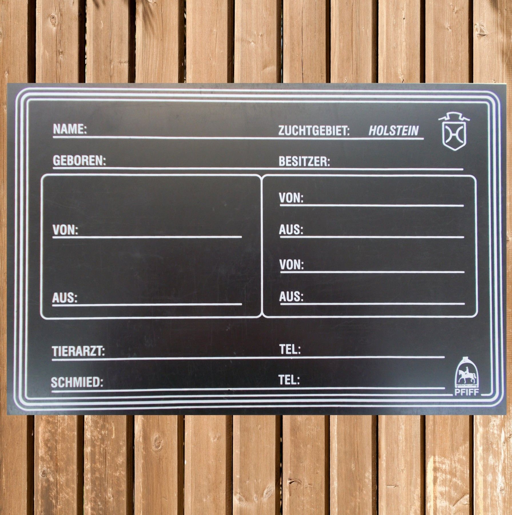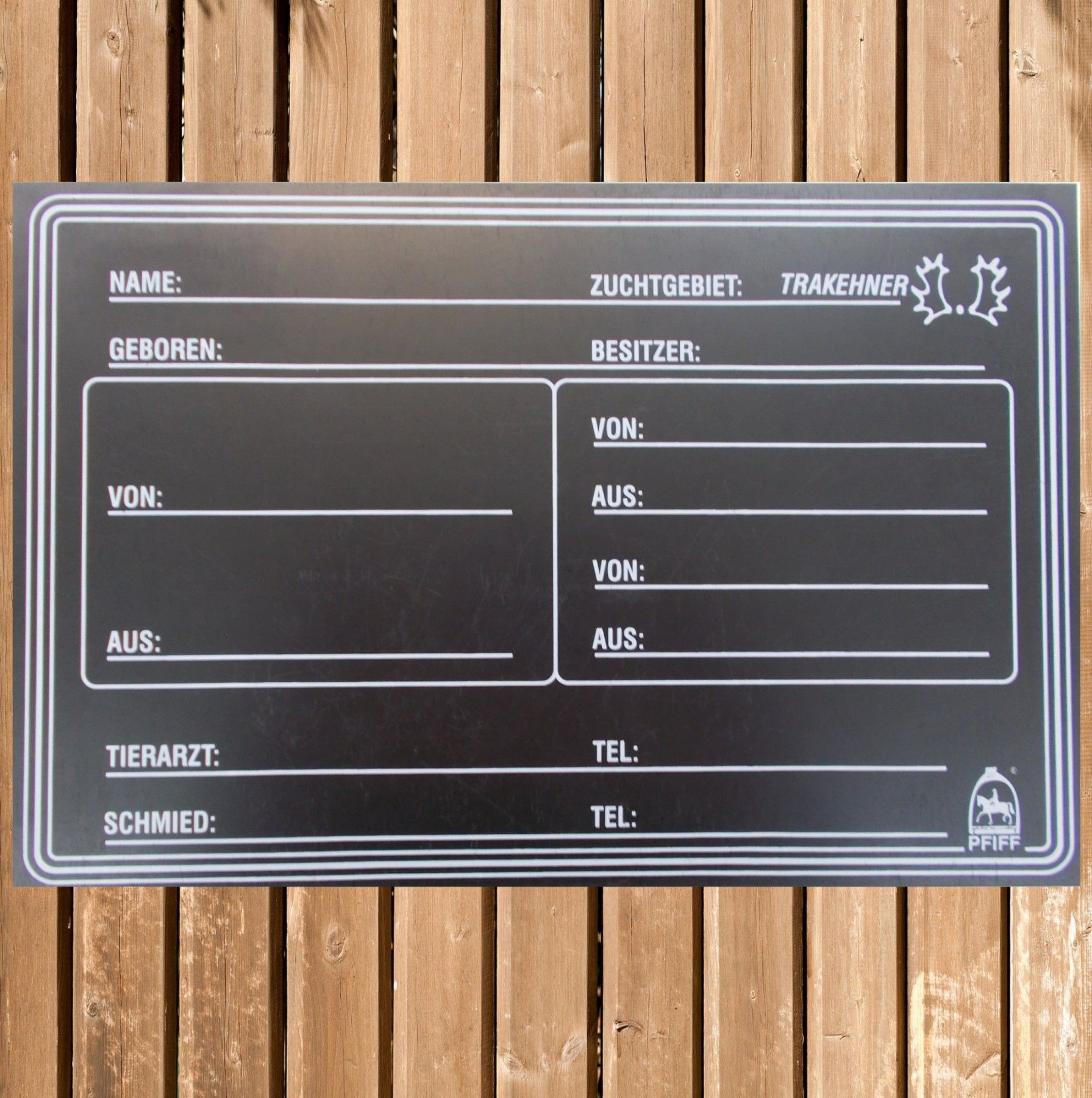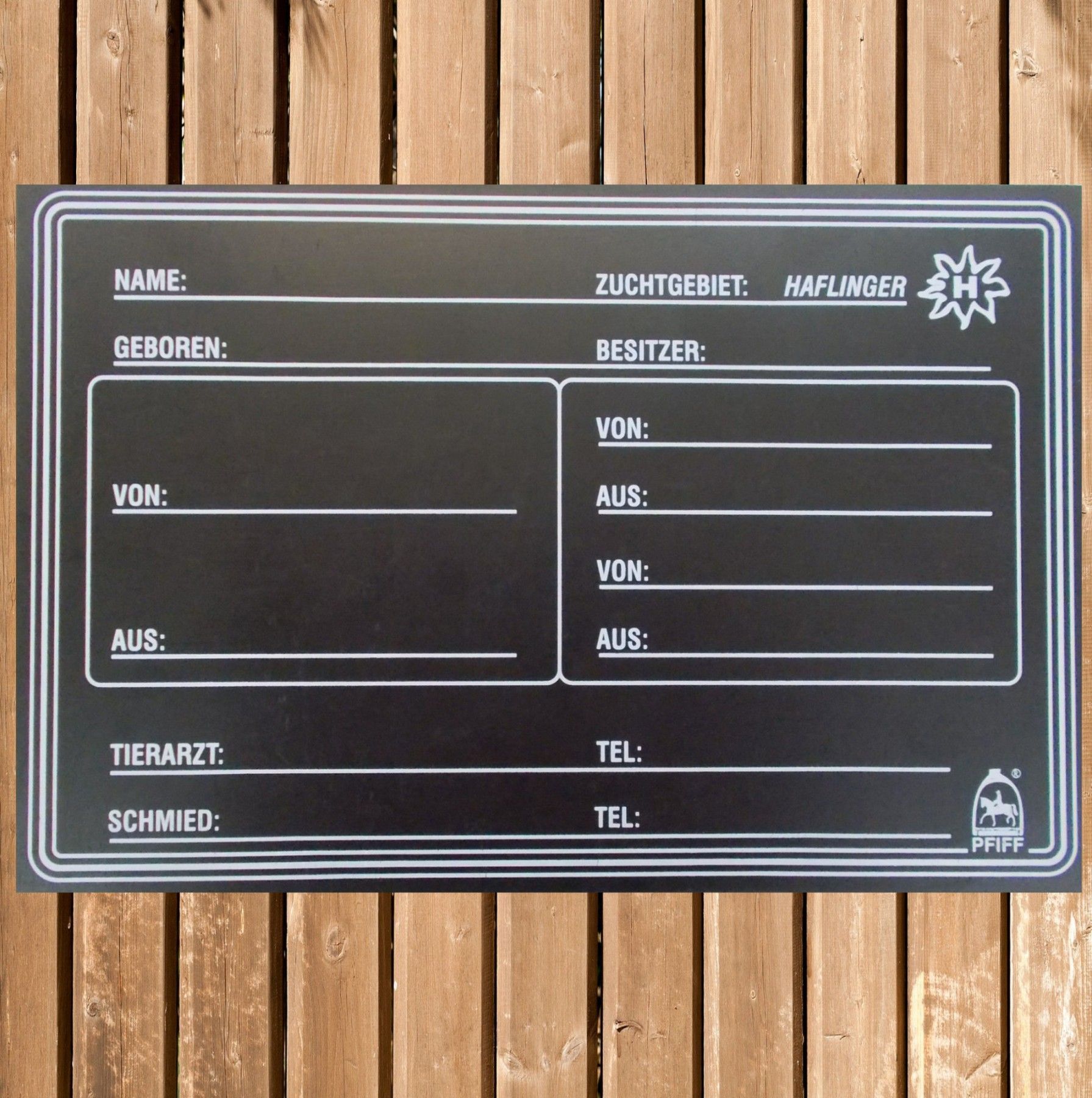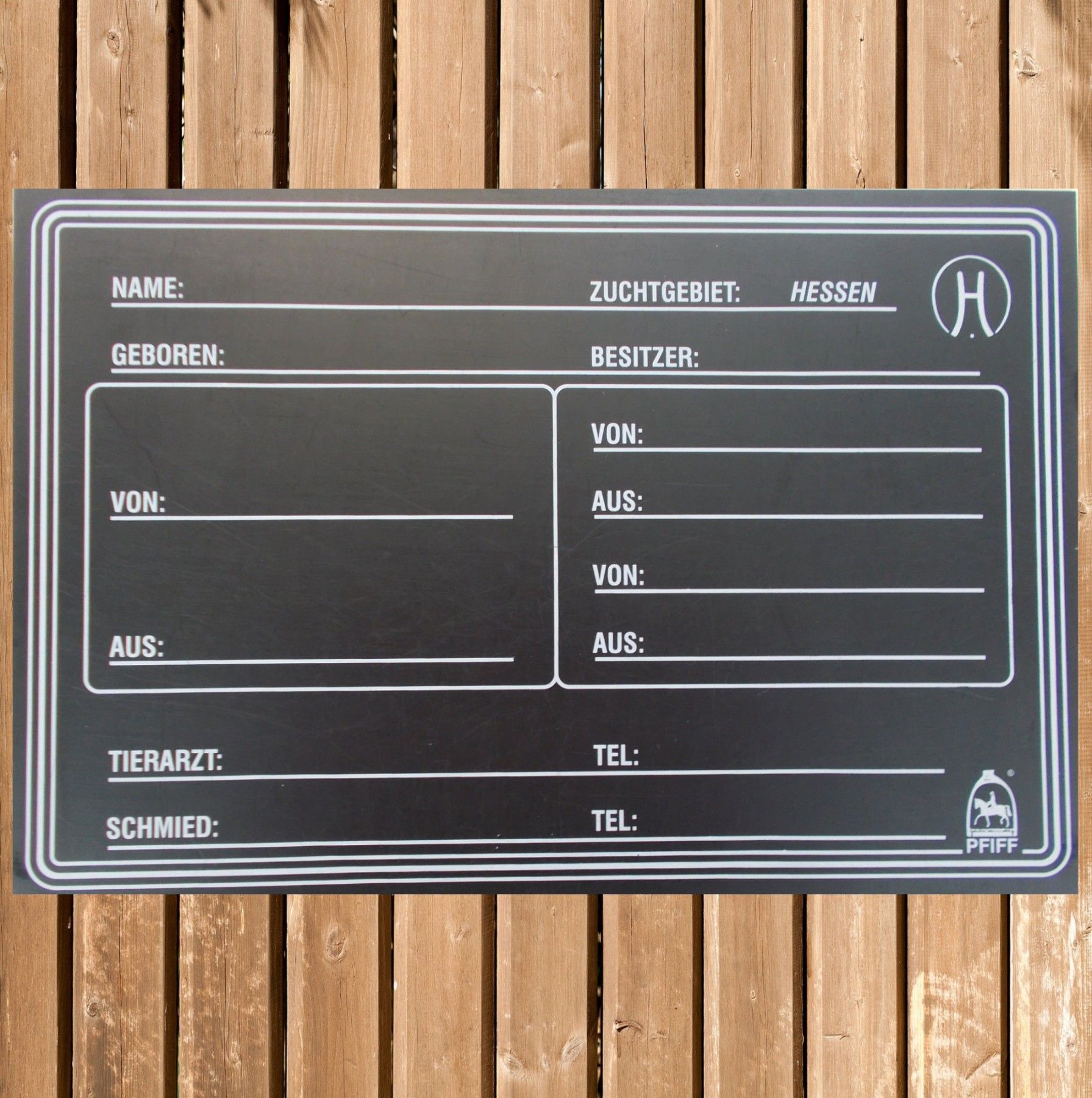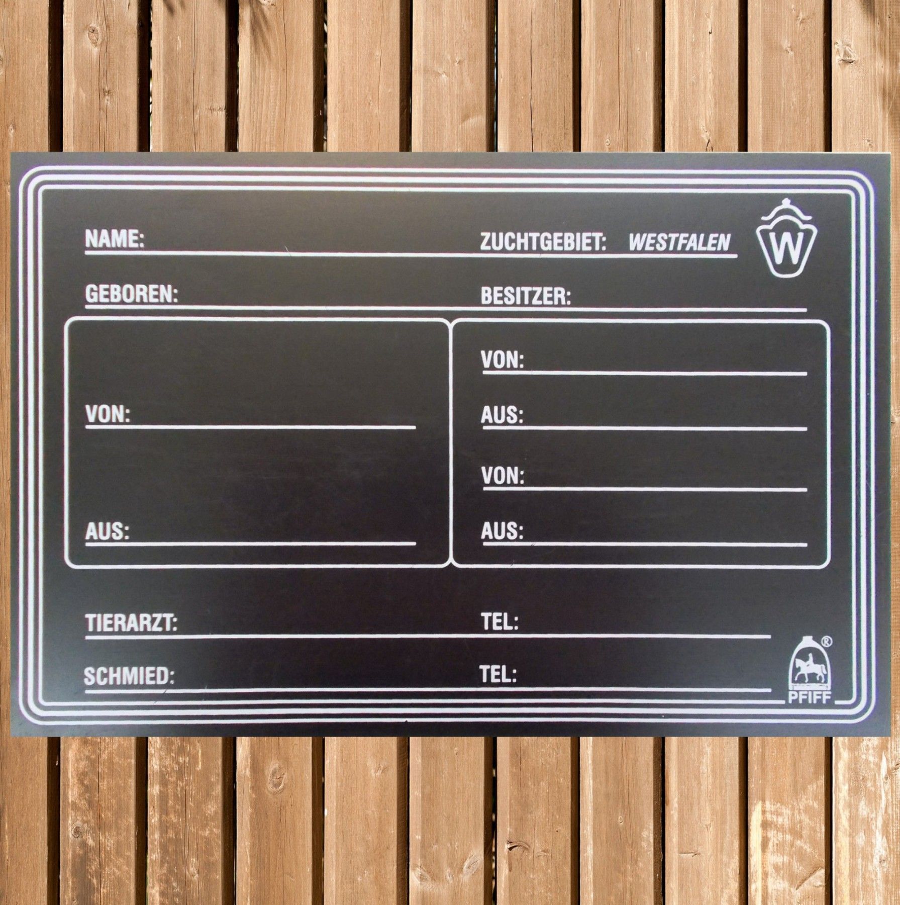 Pfiff Stallabstammungstafel m. Brandzeichen, Pfiff Stalltafel, Boxenschild, Kunststoff