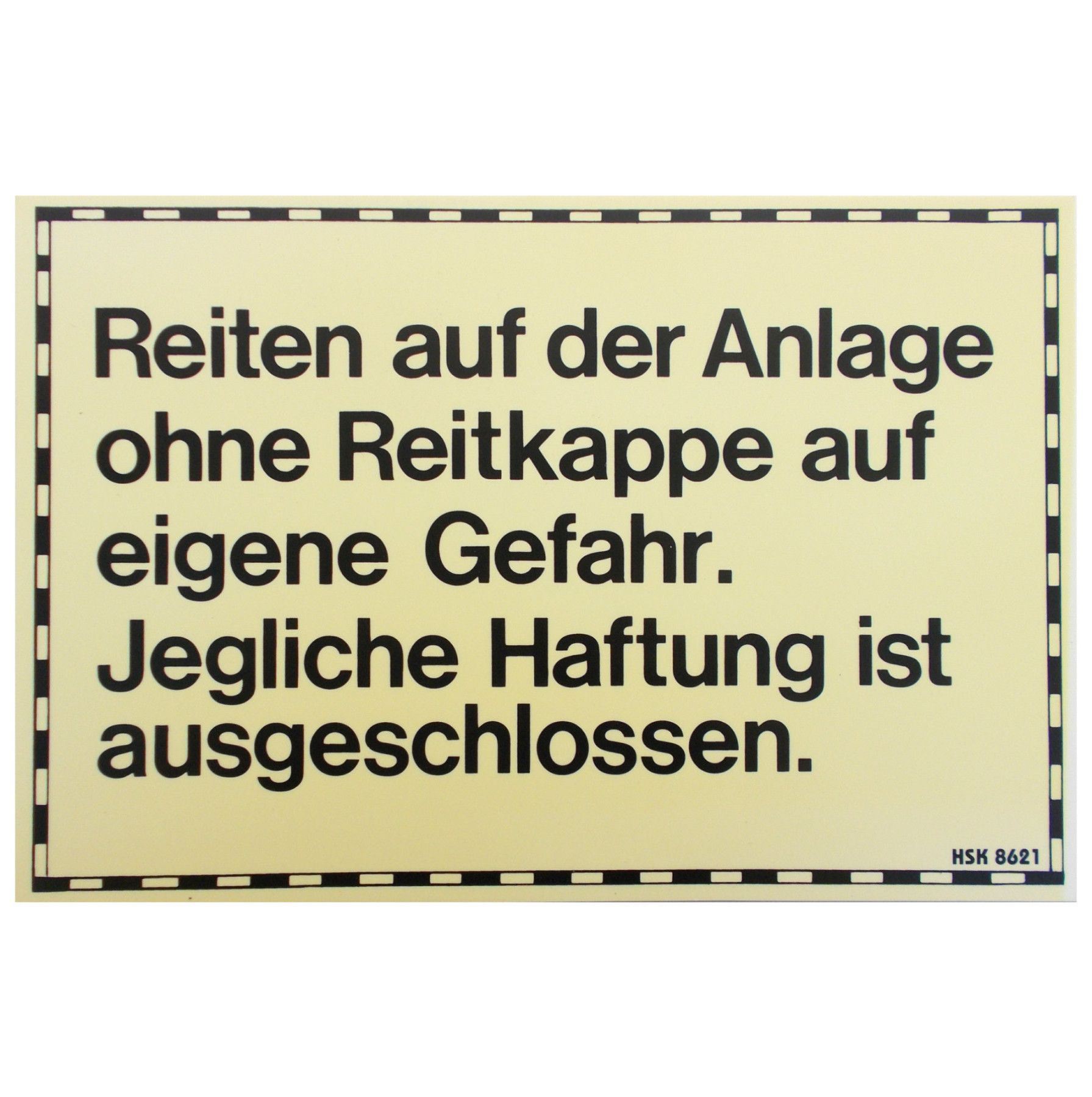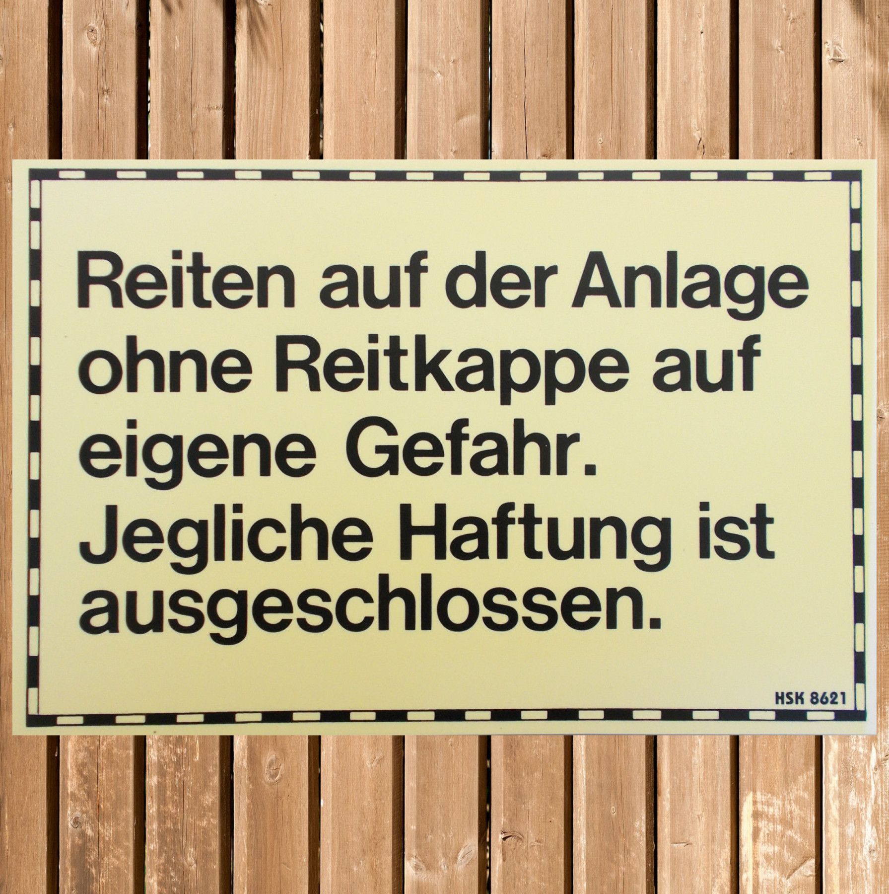Stallschild, Hinweisschild "Reiten auf der Anlage ohne Reitkappe auf...", Fehler