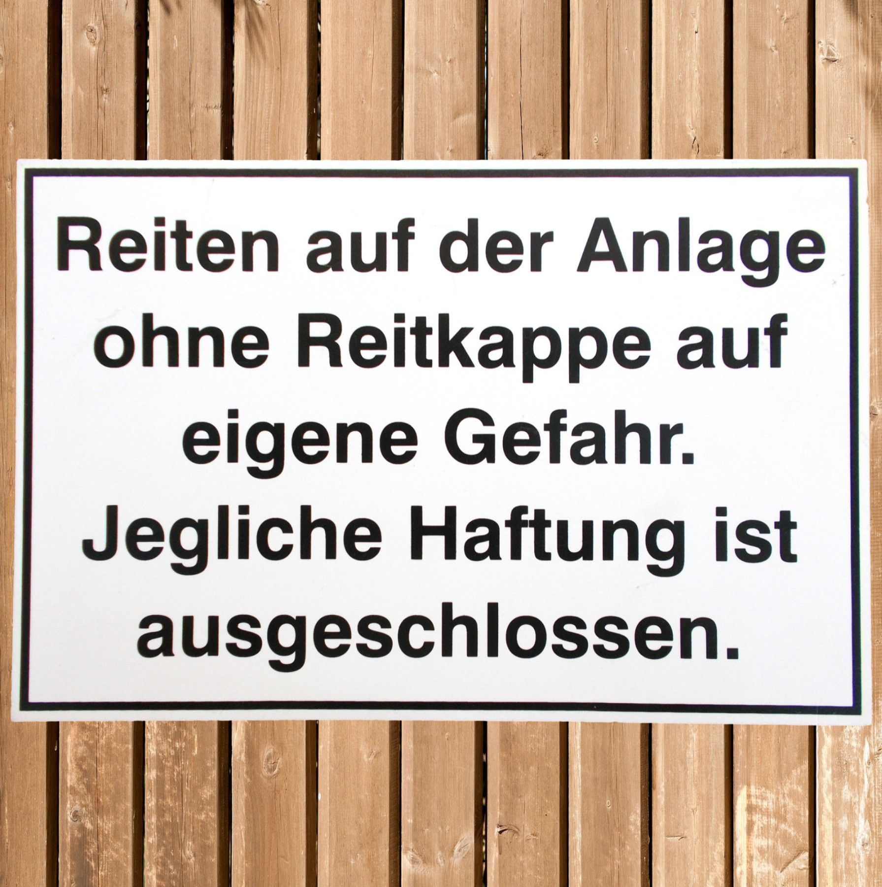Pfiff Stalltafel, Hinweisschild "Reiten auf der Anlage ohne Reitkappe auf eigene..."
