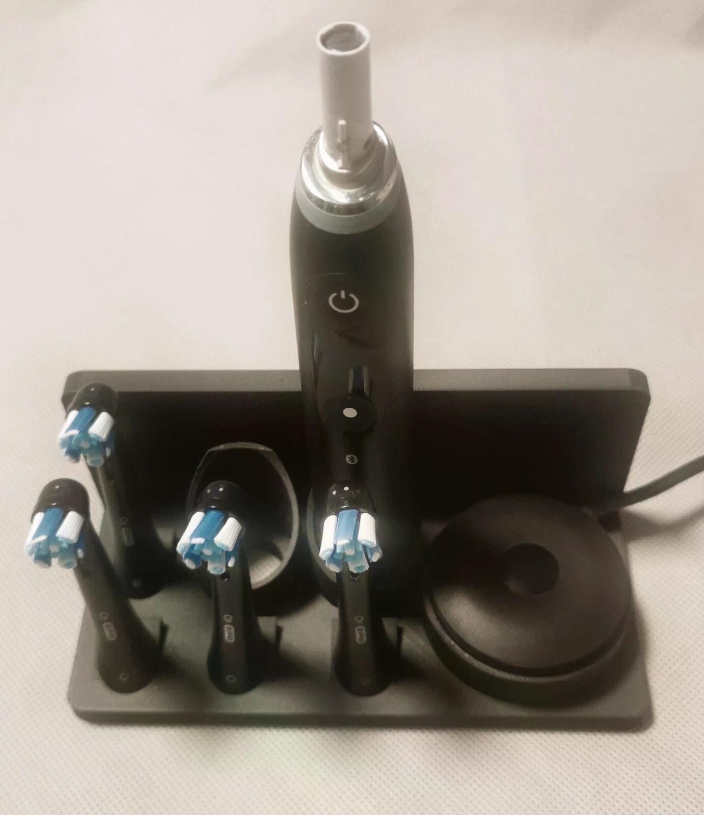 Stand Halterung Passend Für 1 x Oral B IO 7-9 und 4 Aufsteckbürsten schwarz links