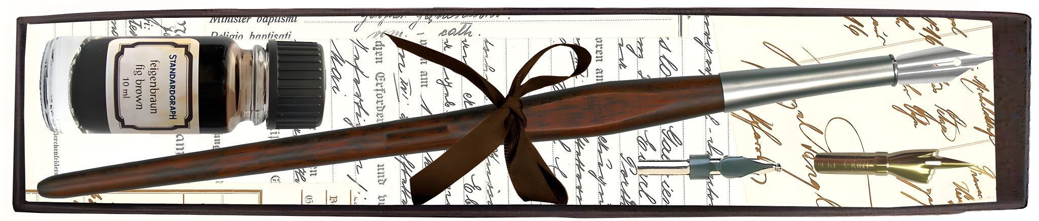 Standardgraph Kalligraphie-Set LUXUS braun, Halter+3xFedern+Tinte 10ml