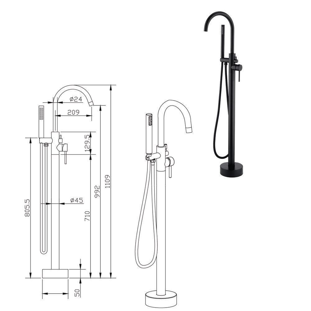 Standarmatur für freistehende Badewannen Schwarz Badewannenarmatur