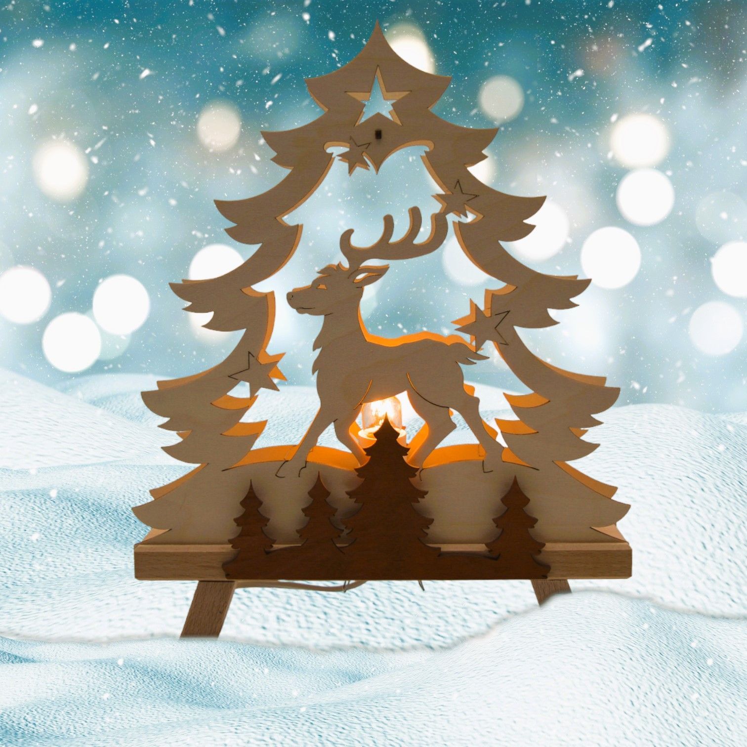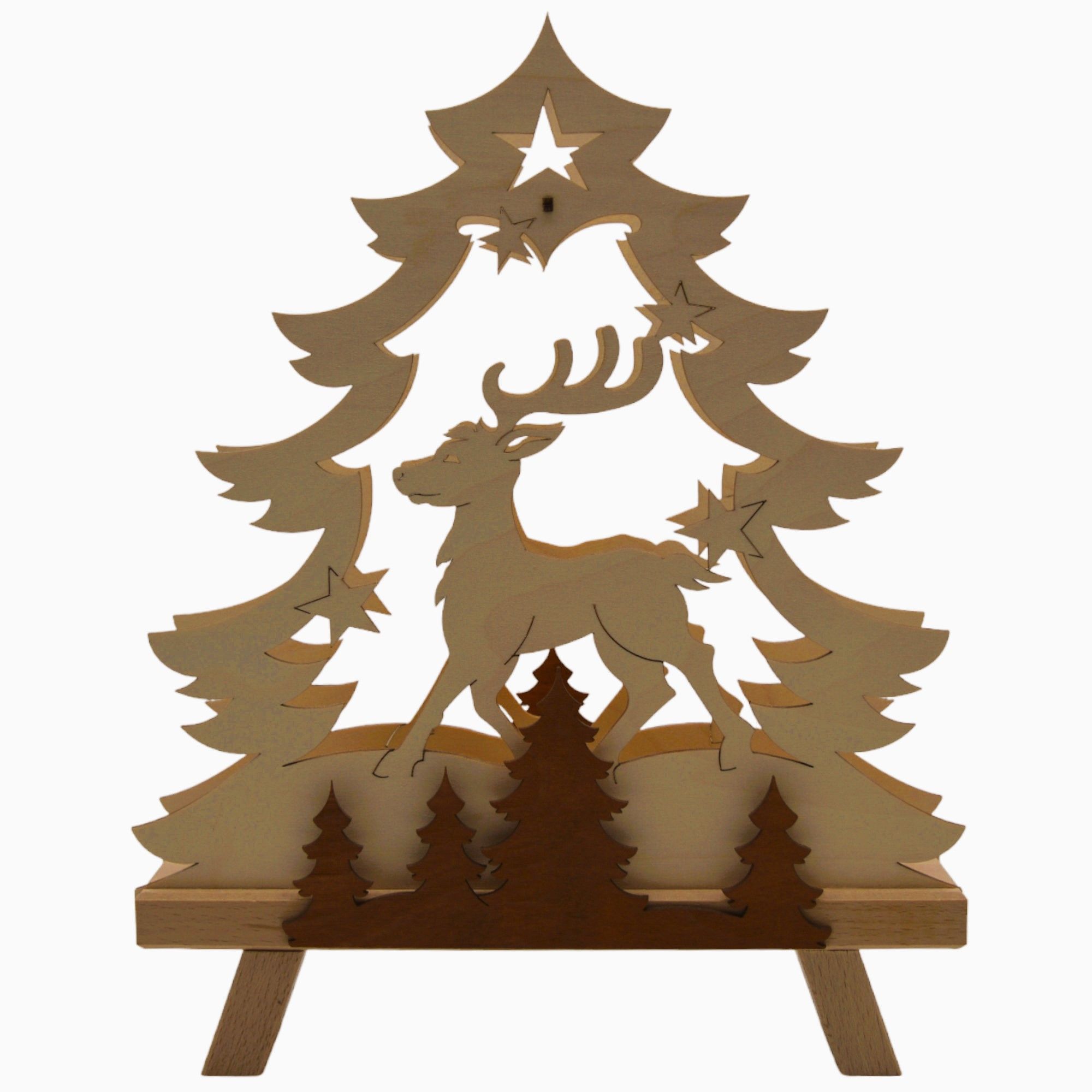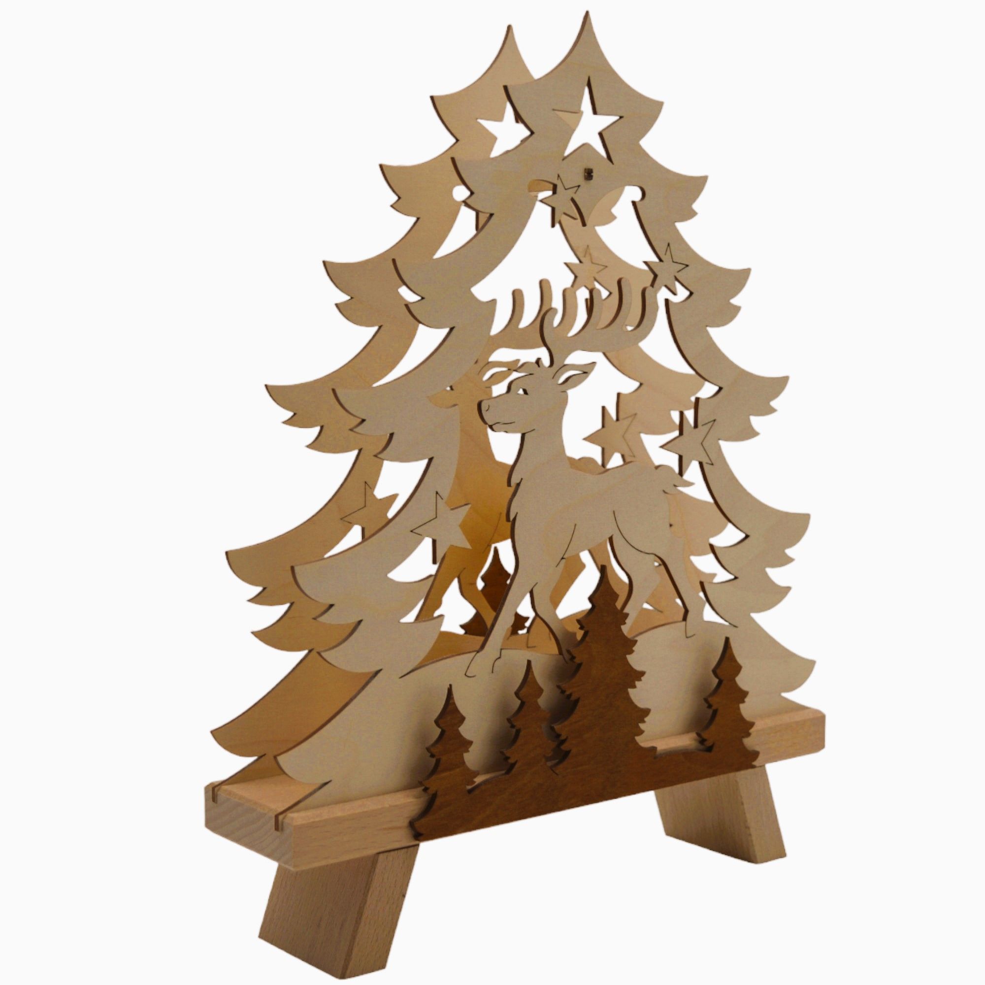 Standleuchte 3D - Baum mit Hirsch, Original Erzgebirge