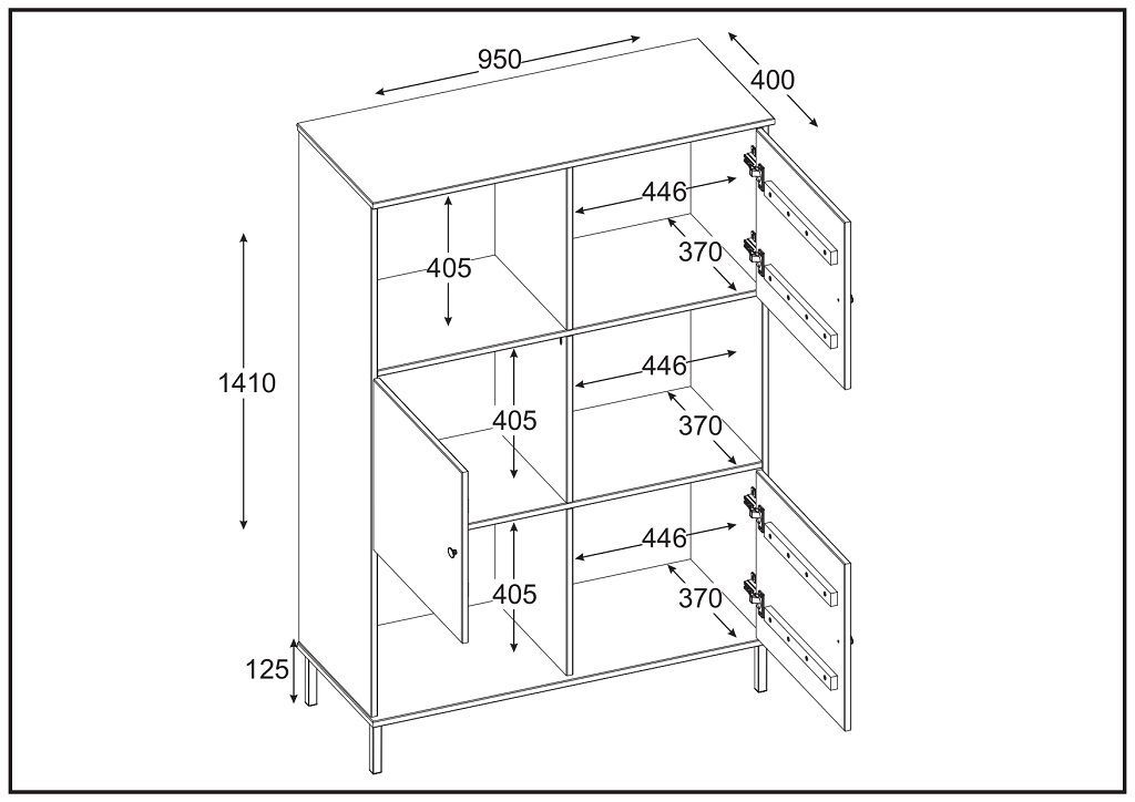 Standregal 95x141cm 'Detroit' Kiefer massiv eichefarbig & schwarz
