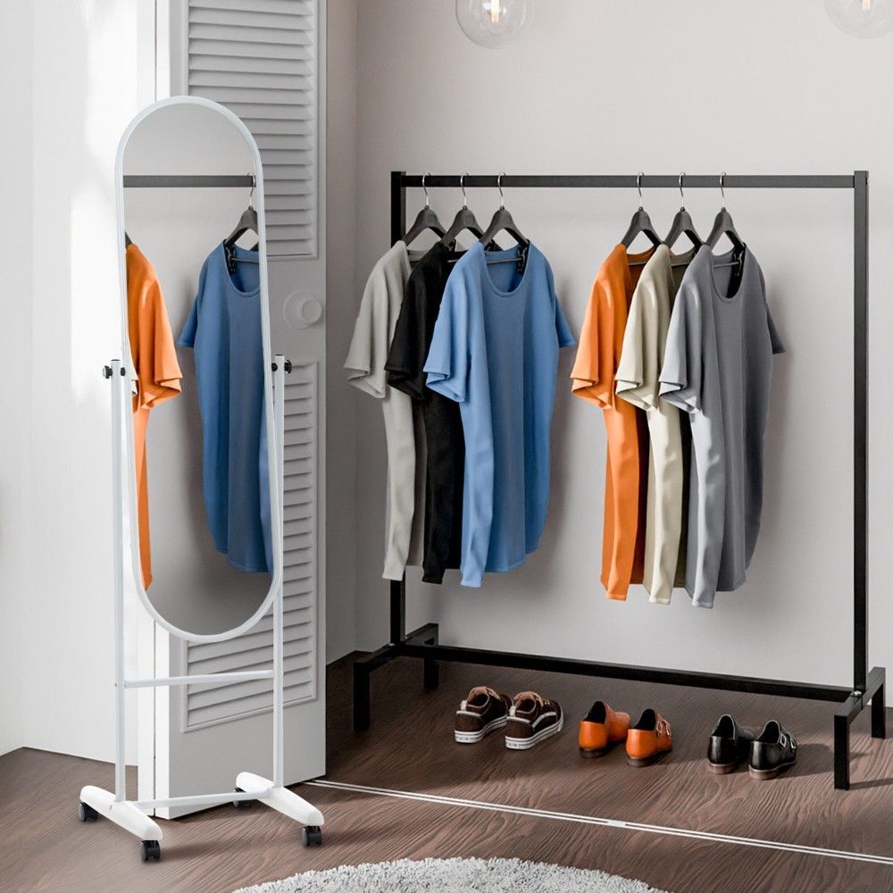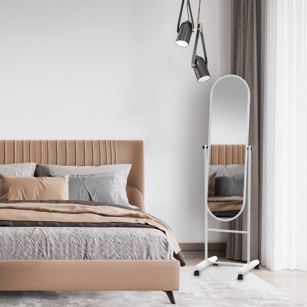 Standspiegel auf Rollen-modern Ganzkörperspiegel Ankleidespiegel neigbar- Weiß