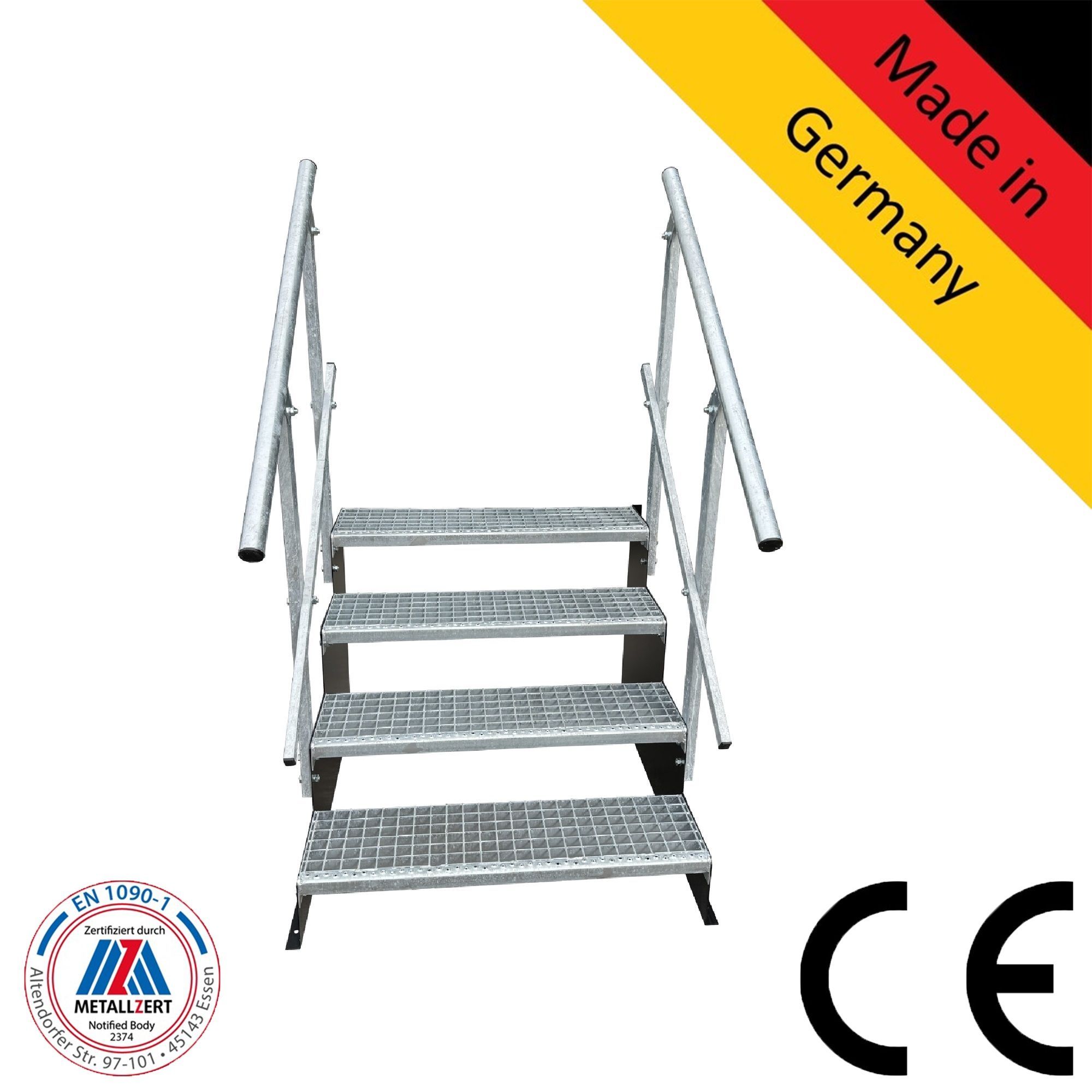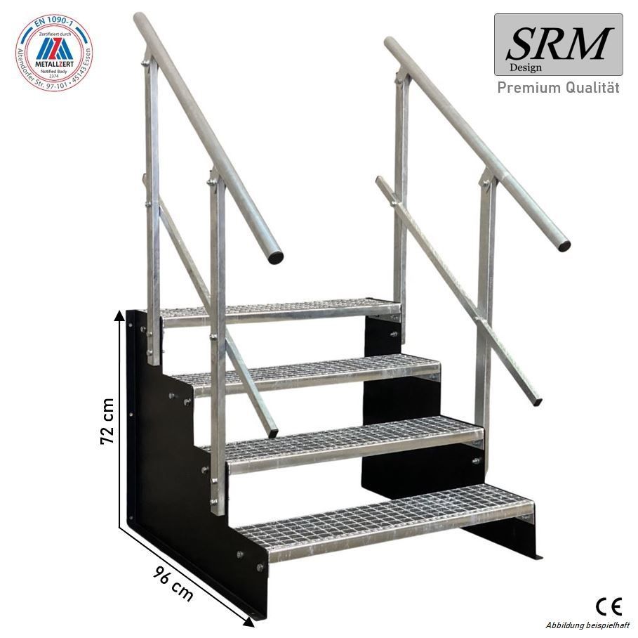 Standtreppe freistehend Treppe 4 Stufen schwarz, 60 - 160 cm B, 72 cm H, 2 Gel