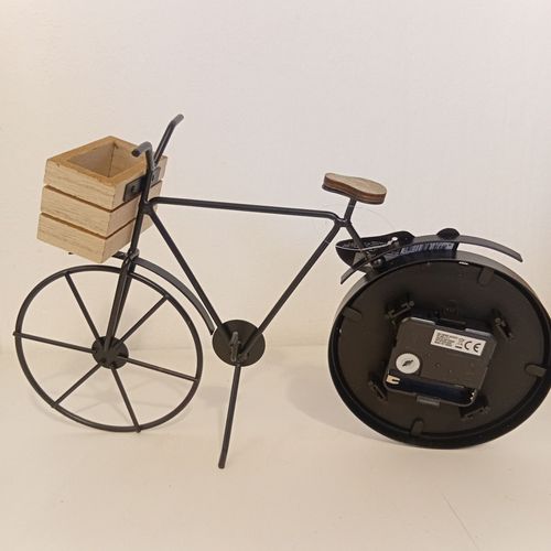 Tischuhr Fahrrad Größe: 33,5 x 8 x 23,5 cm Farbe: Schwarz Batterie: 1 x AA Material: Metall Marke: Unbekannt mit Holzfahrradkorb