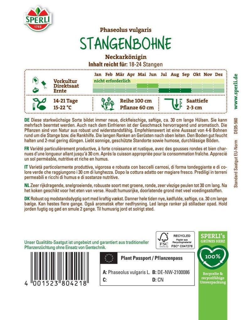 Sperli Stangenbohne Neckarkönigin, dickfleischig, widerstandsfähig, Saatgut von Sperli